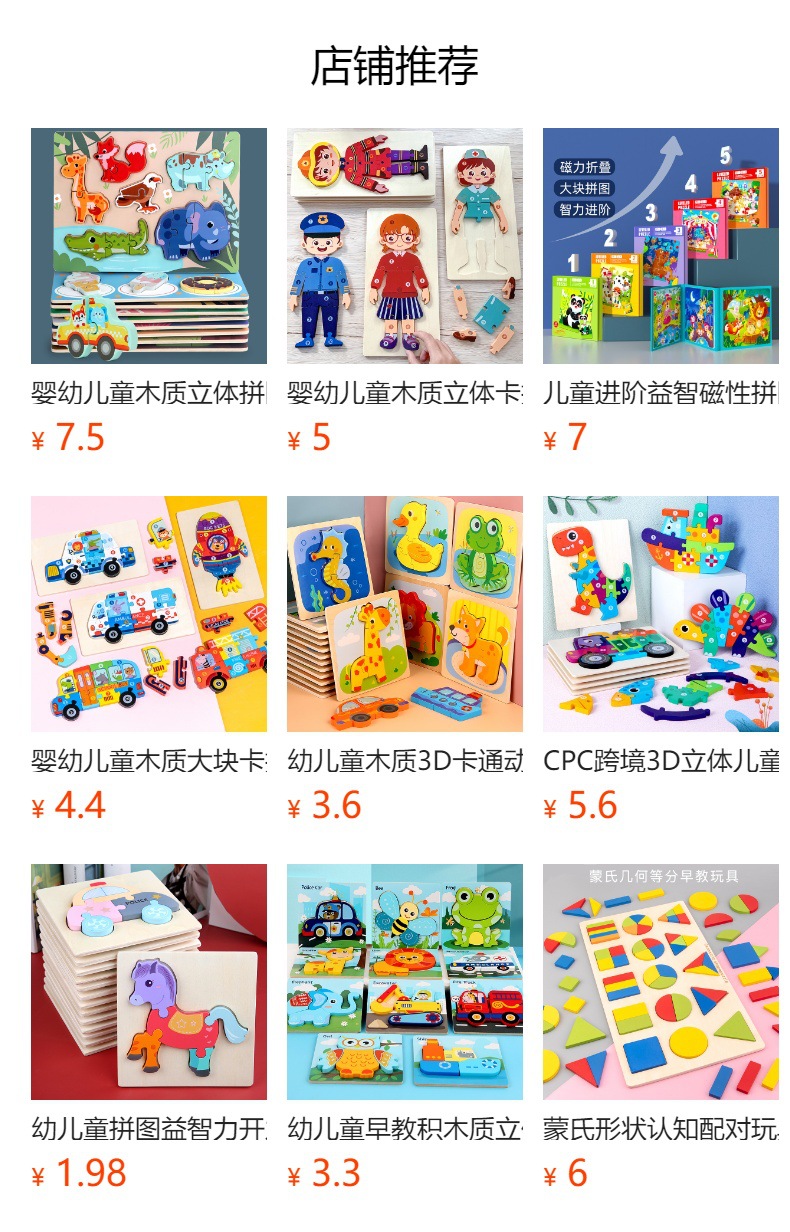 유아용 퍼즐 1~2-3세 4세 5세 나무 입체 퍼즐 남아 여아 아기 교육용 장난감 조립스토어 가기