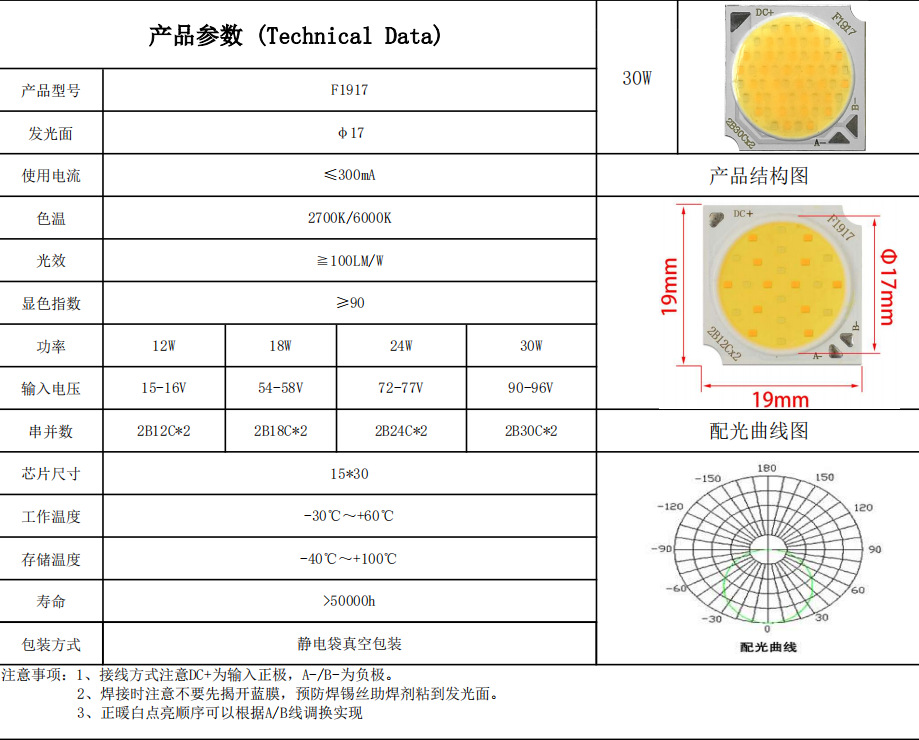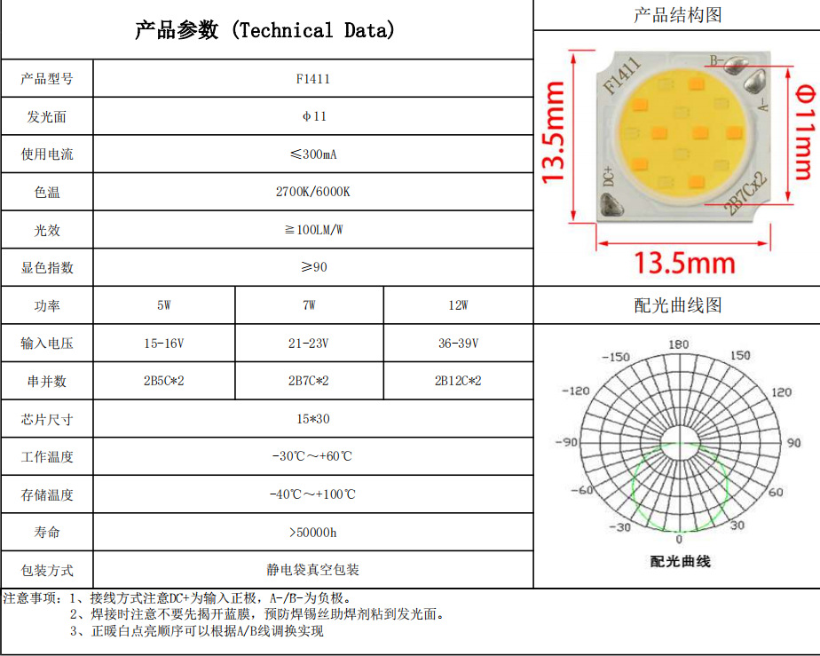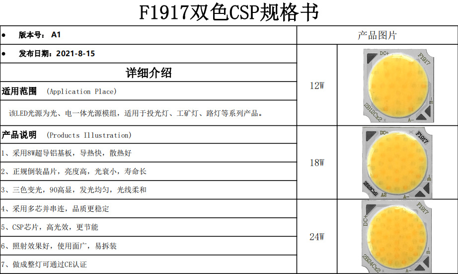 F1411-CSP/F1917-CSP 2 색 LED 램프 구슬 손전등 프로젝션 램프 구슬 2 색 광원 모듈
