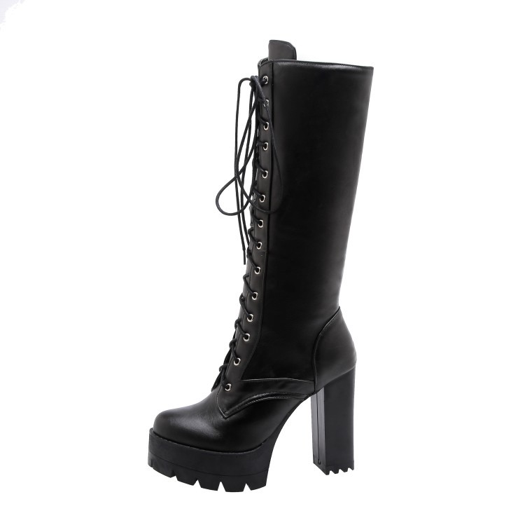 소원 아마존 크로스 국경 대외 무역 방수 플랫폼 패션 신발 크로스 스트랩 하이 배럴 두꺼운 바닥 여성 부츠