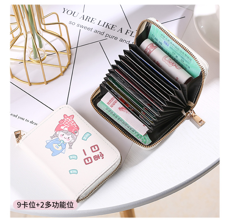 카드 가방 여성 소형 멀티 카드 비트 대용량 안티 데기 도난 방지 브러시 한국인 드라이버 라이센스 귀여운 원피스 코인 지갑