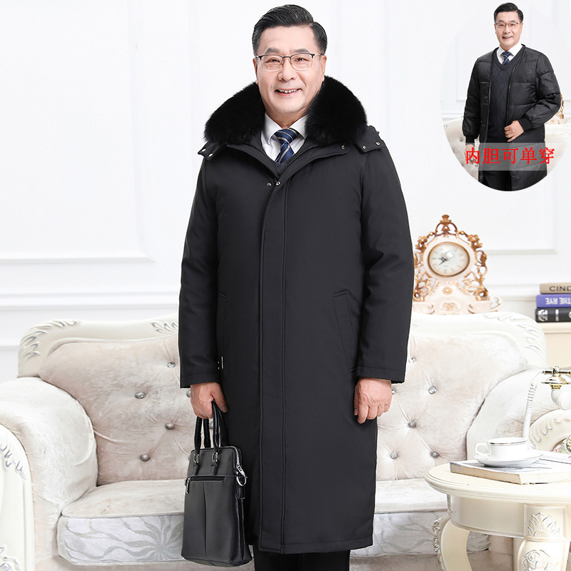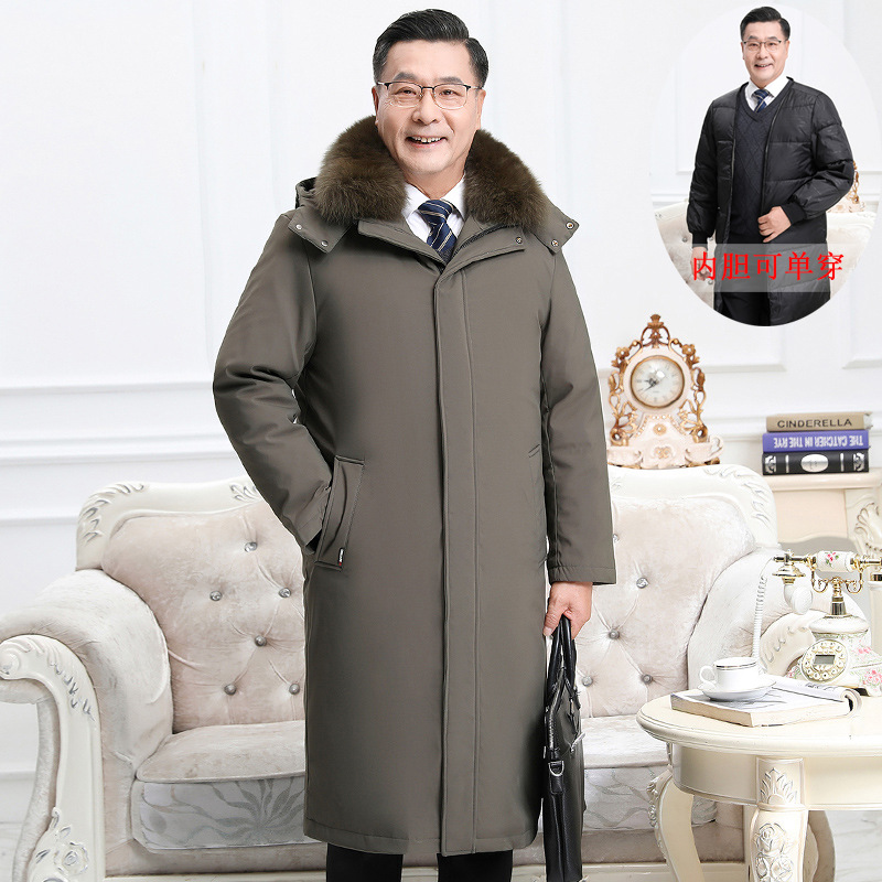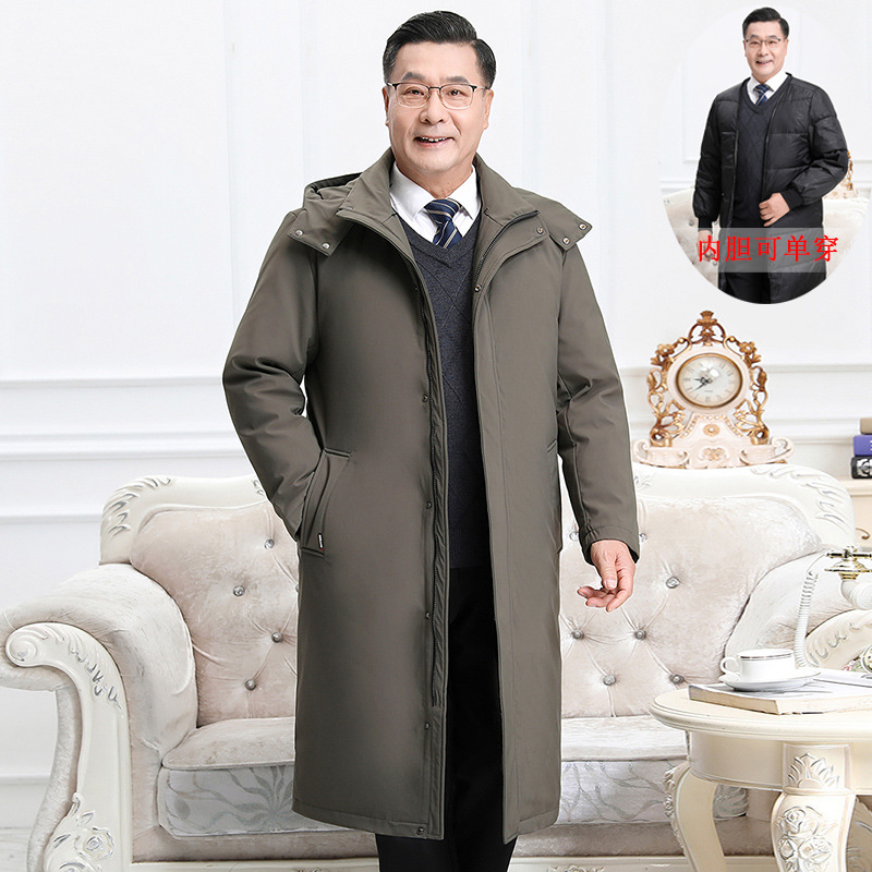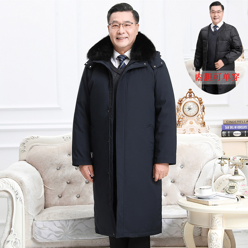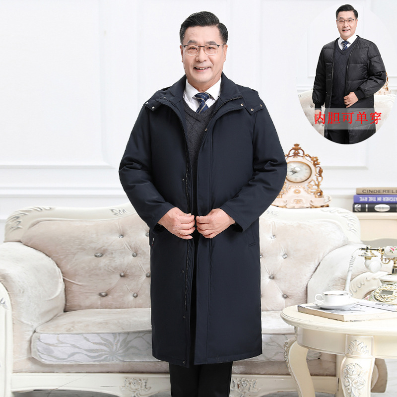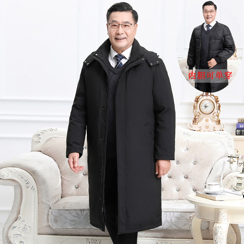 중년 및 노인 남자의 긴 아빠 옷 두꺼운 무릎 위 라이브 국수 할아버지 겨울 옷을 위한 플러스 사이즈 이동식 다운 재킷