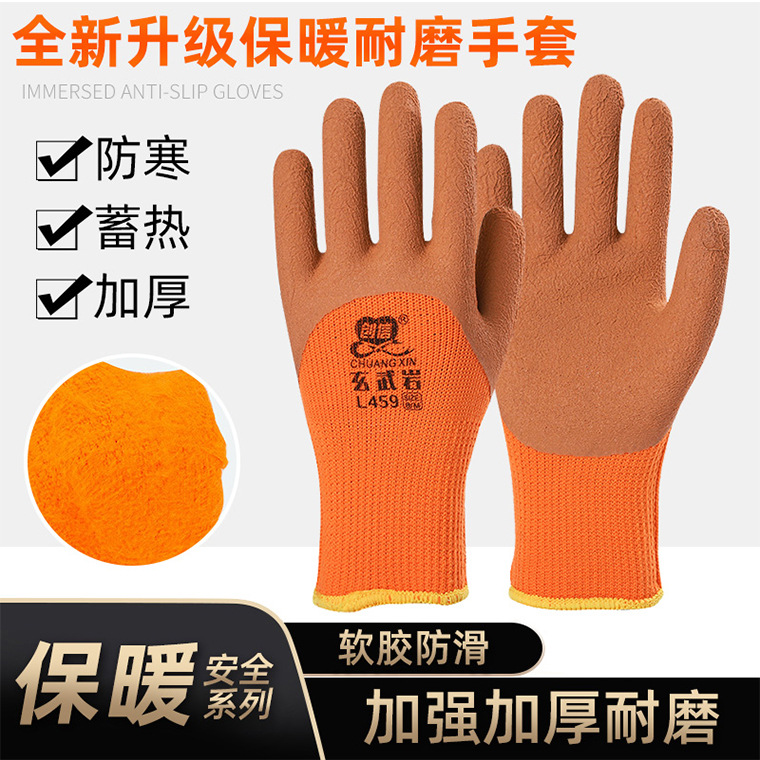 Chuangxin L459 현무암 테리 고무 폼 장갑 두꺼운 기모 방한 따뜻한 함침 노동 장갑스토어 가기