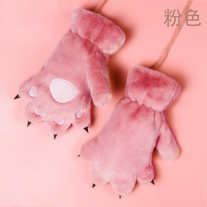 어린이 따뜻한 성능 곰 발 기모 두꺼운 큰 어린이 장갑 끈 안티 분실 패션 귀여운 어린이 따뜻한 장갑