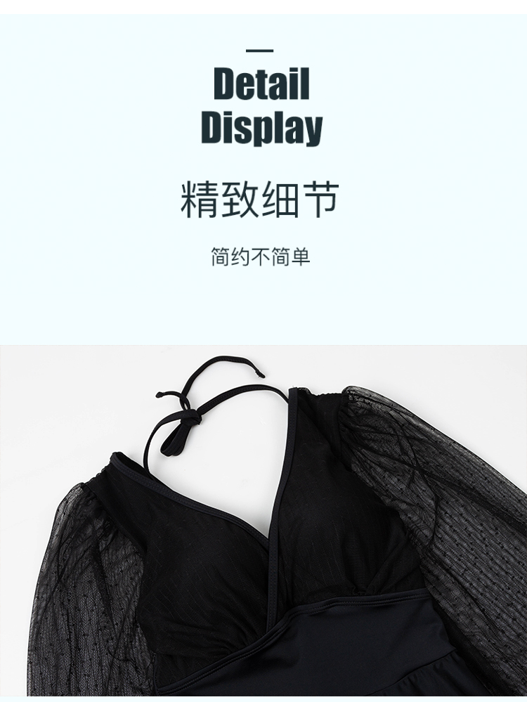고기 덮인 수영복 여성용 플러스 사이즈 통통녀 온천 배꼽 덮개 슬리밍 원피스 스커트 수영복 블랙 긴팔 푸시업 큰 가슴스토어 가기