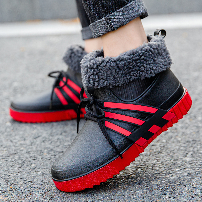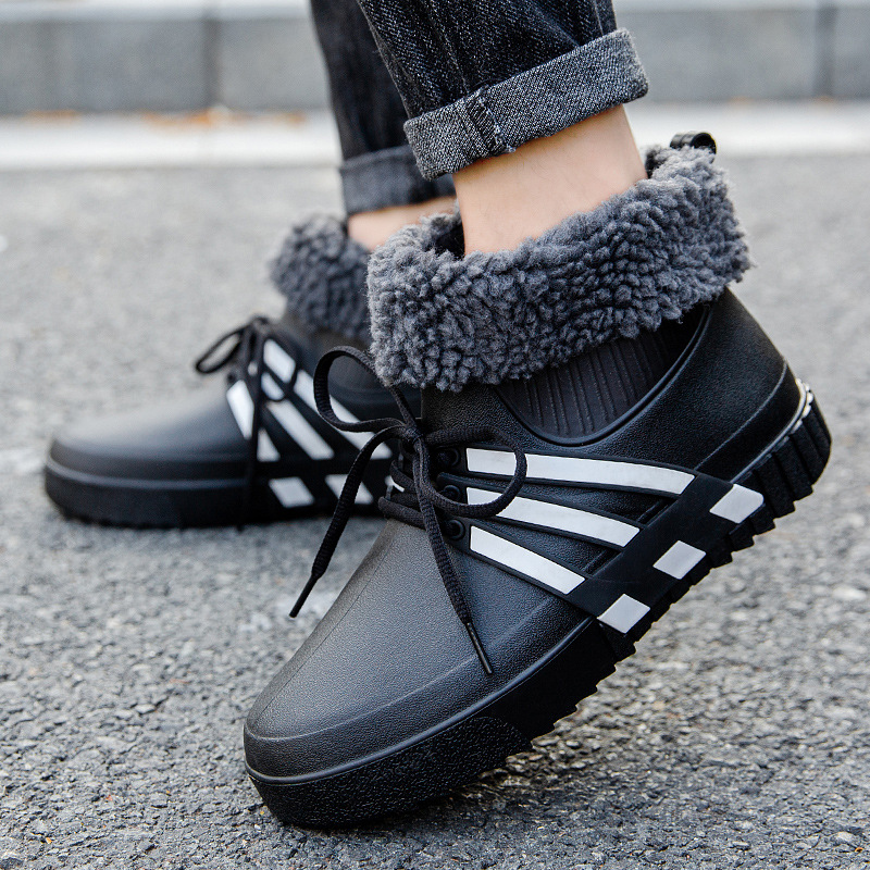 새로운 패션 따뜻한 면 미끄럼 방지 방수 장화 남성용 미드 튜브 장화 두꺼운 낚시 주방 세차 물 신발 및 부츠스토어 가기