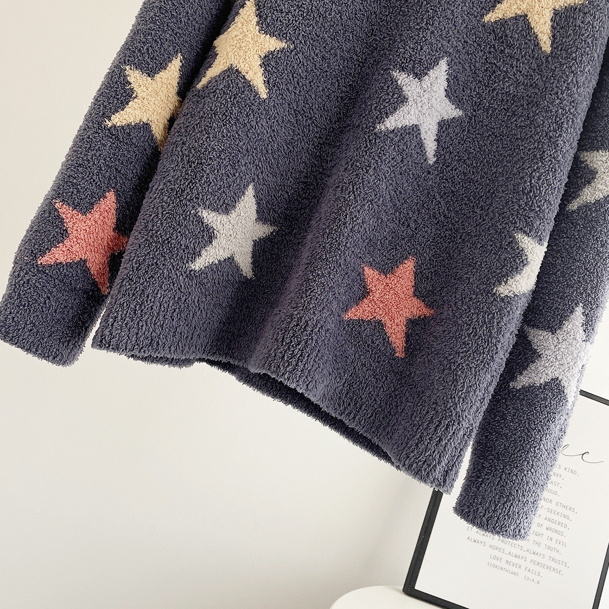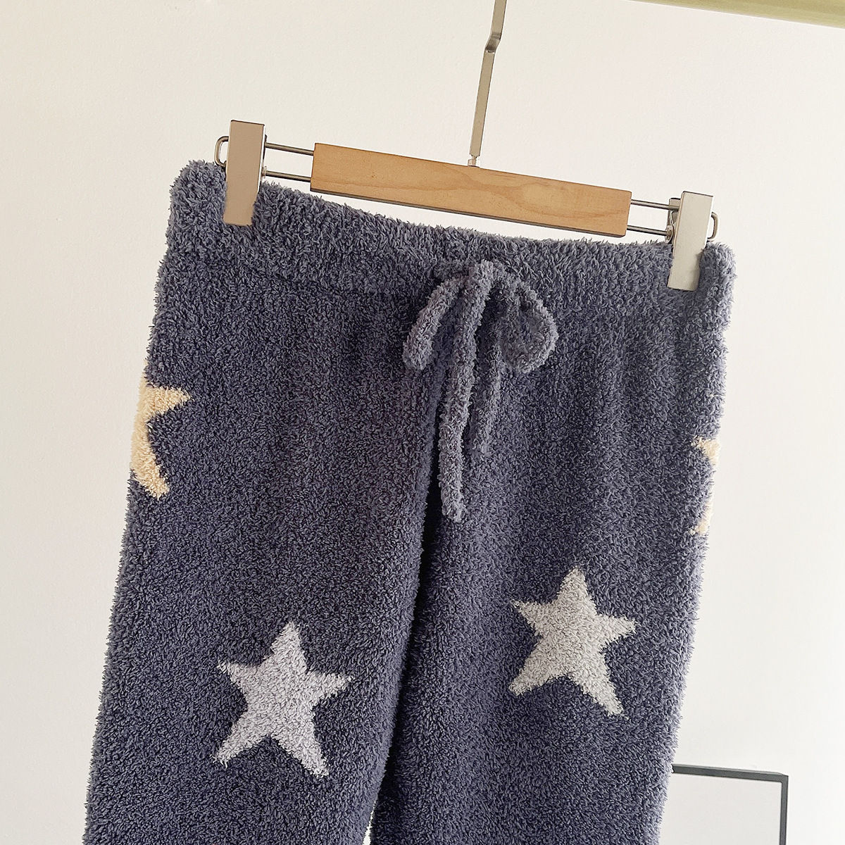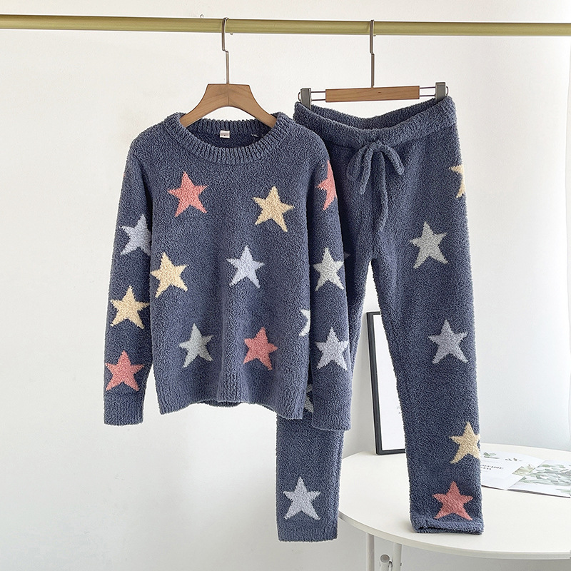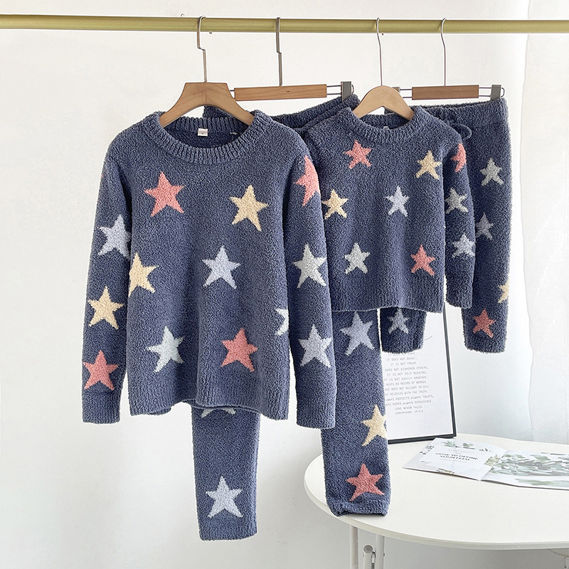 여자 풀오버 가을과 겨울 부드러운 반쪽 벨벳 5 개 별 따뜻한 봉제 부모-자식 커플 잠옷 가정 옷 세트