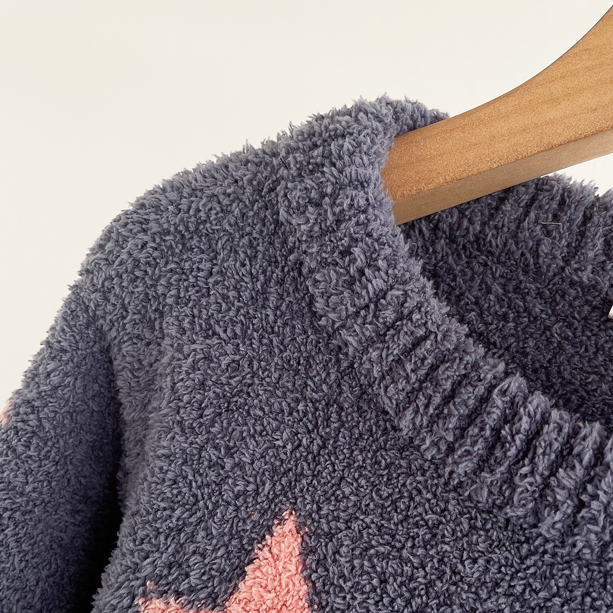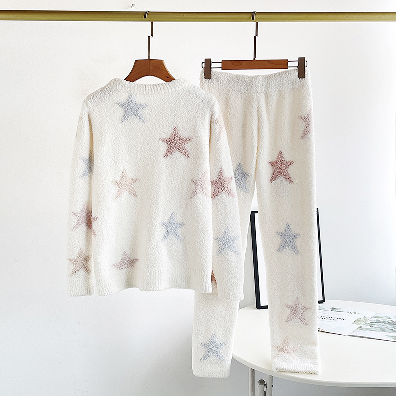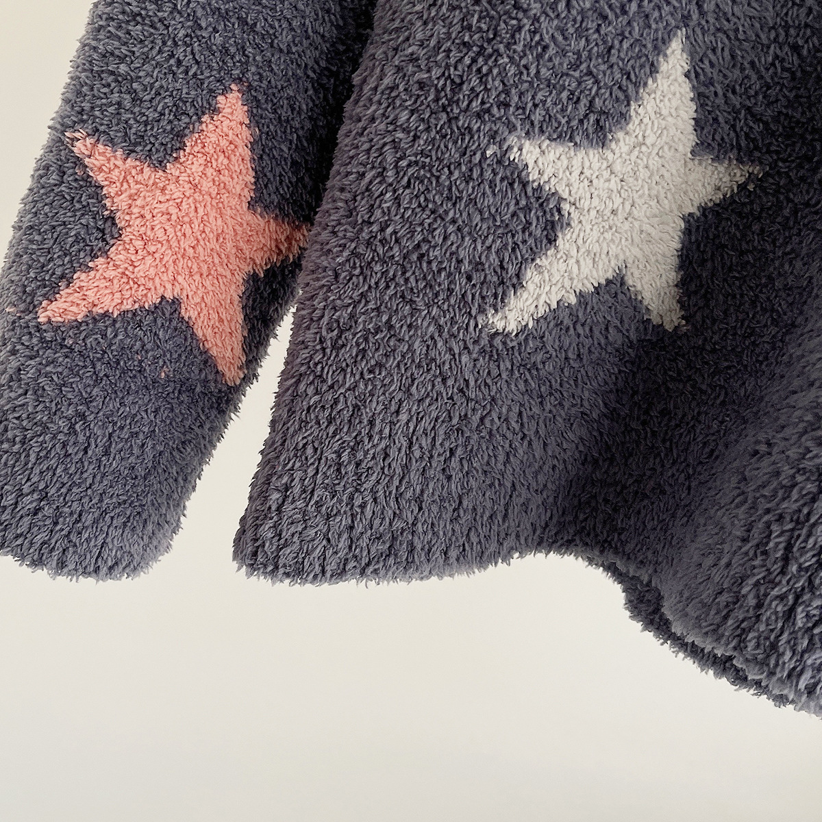 여자 풀오버 가을과 겨울 부드러운 반쪽 벨벳 5 개 별 따뜻한 봉제 부모-자식 커플 잠옷 가정 옷 세트