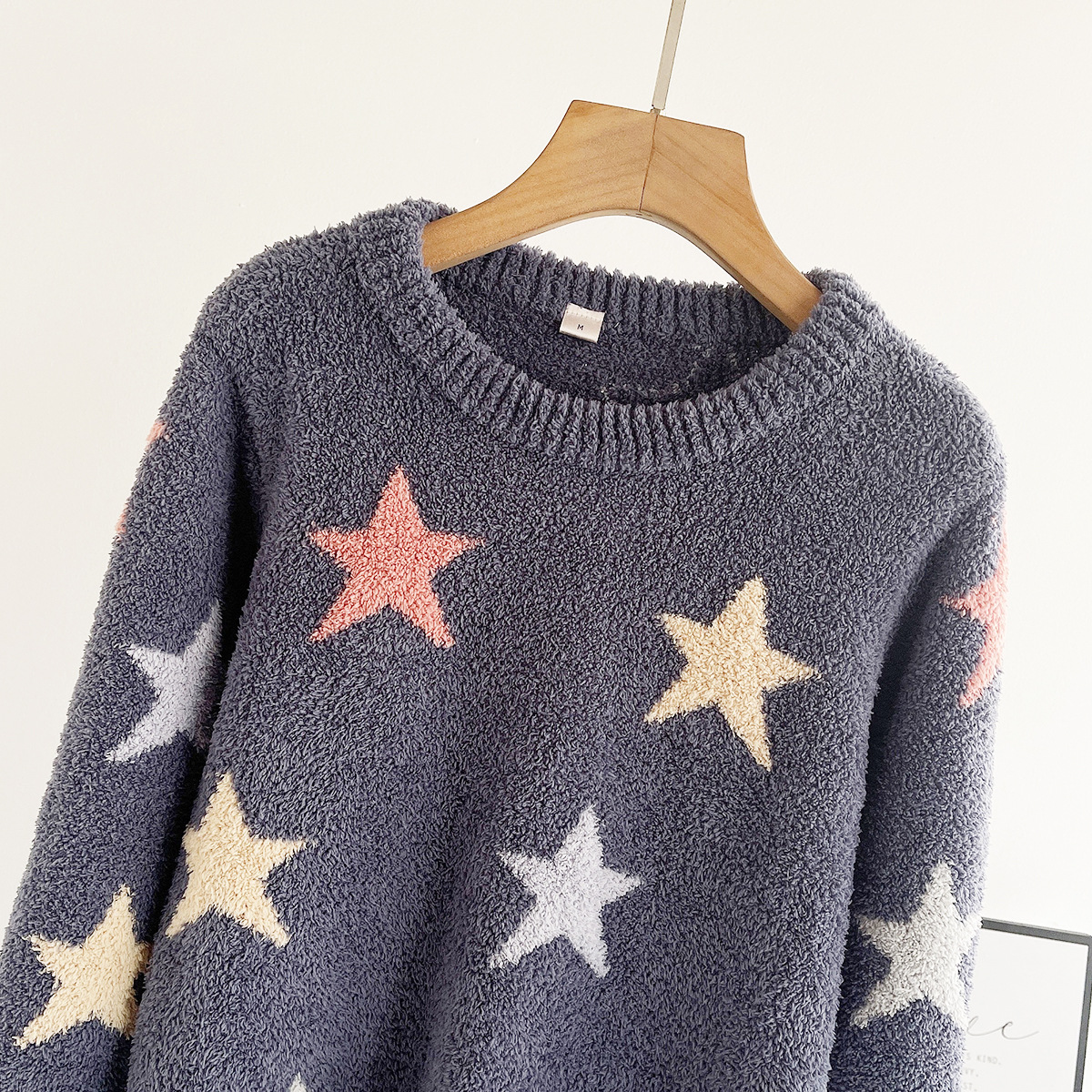 여자 풀오버 가을과 겨울 부드러운 반쪽 벨벳 5 개 별 따뜻한 봉제 부모-자식 커플 잠옷 가정 옷 세트스토어 가기