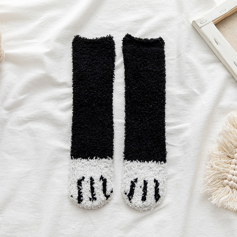 어린이 양말 23 가을과 겨울 산호 양털 두꺼운 미끄럼 방지 아기 양말 홈 바닥 양말 소년 소녀를위한 고양이 발톱 미드 튜브 양말