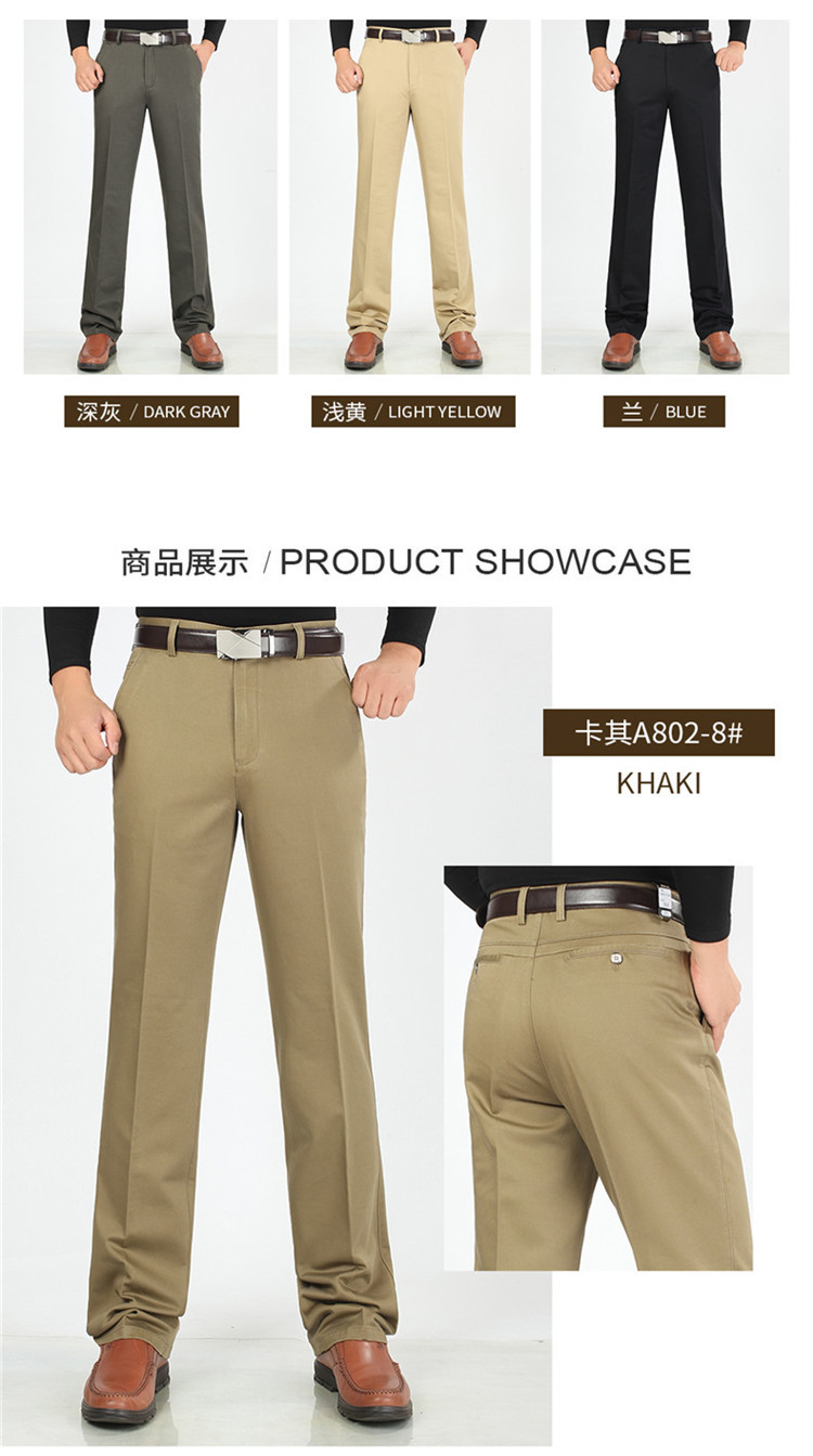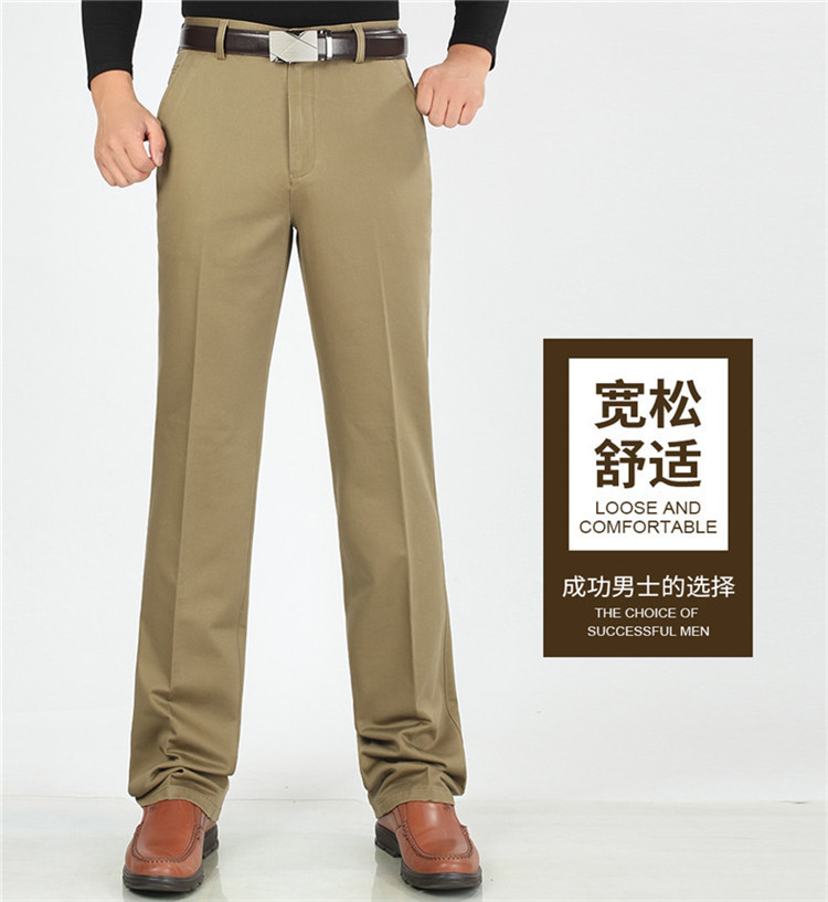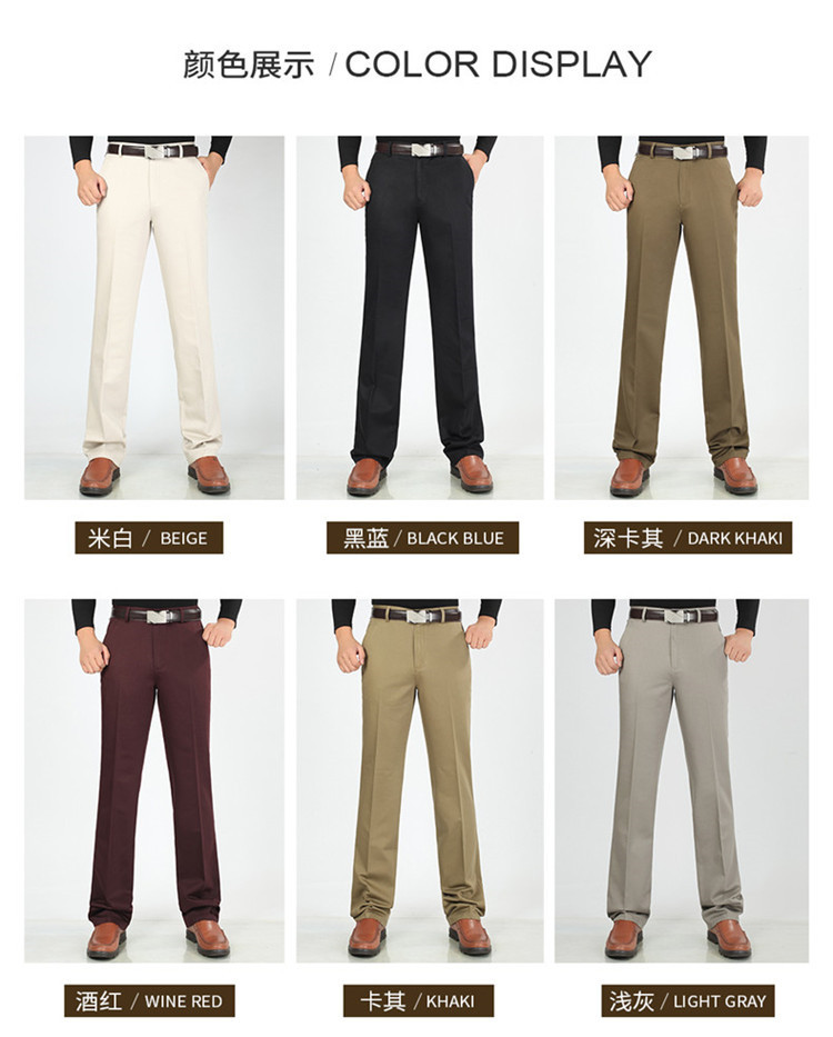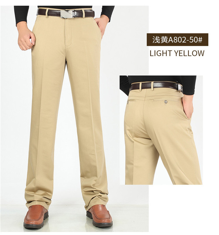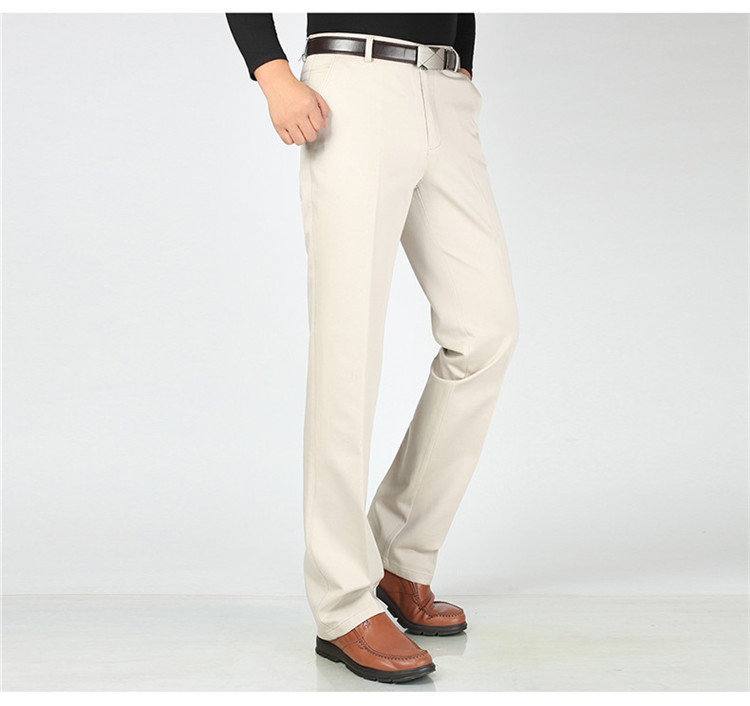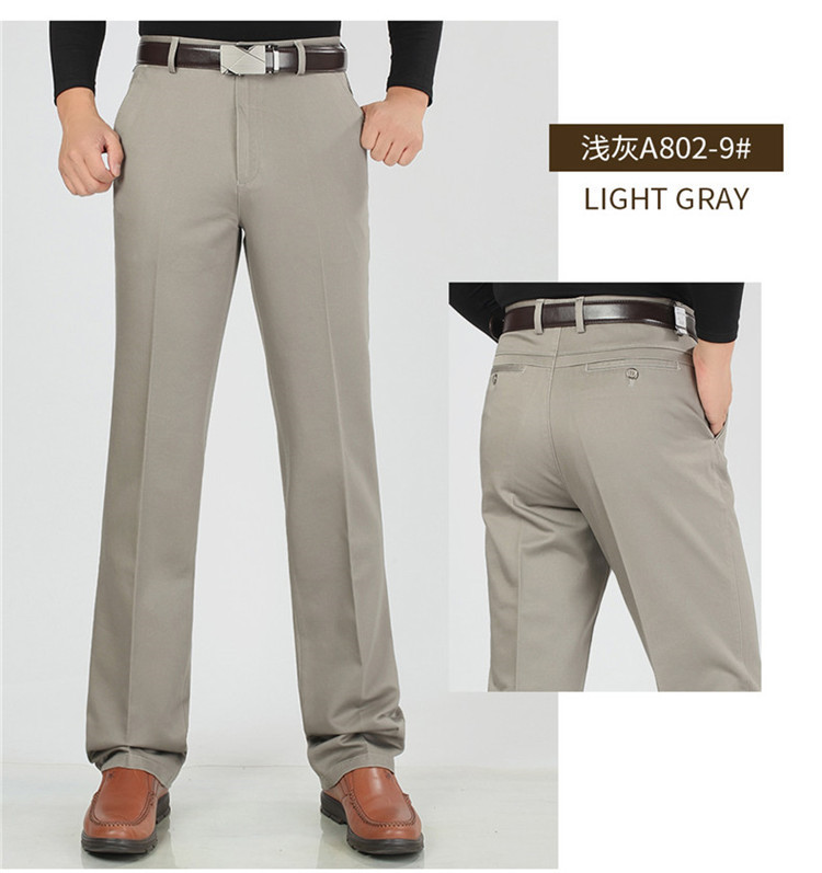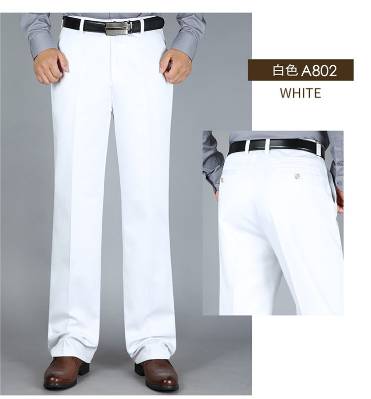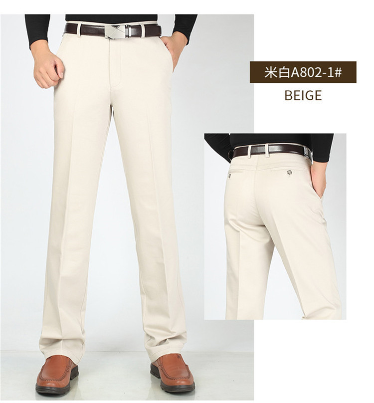 2025년 봄/가을 남성용 캐주얼 팬츠, 하이웨이스트, 깊은 허리선, 루즈핏, 신축성 있는 스트레이트 팬츠, 중장년층용, 순백색, 다림질 필요 없는 긴바지스토어 가기