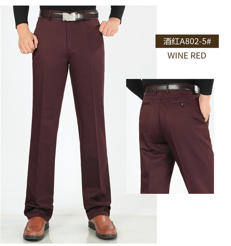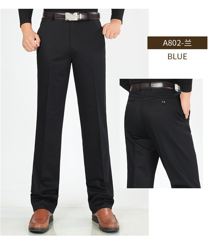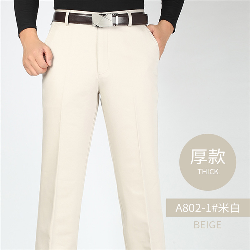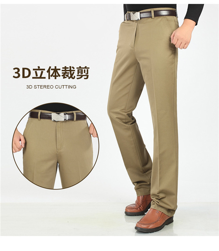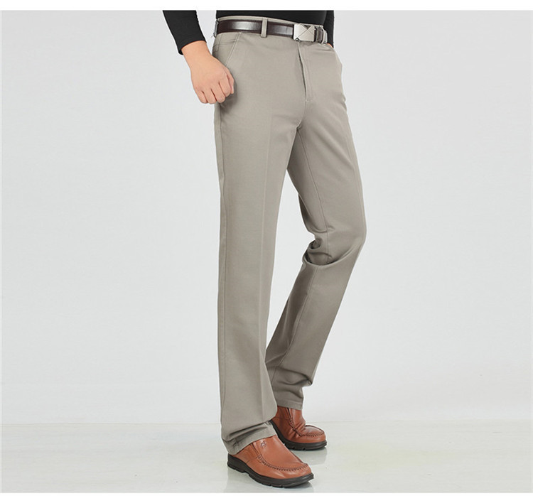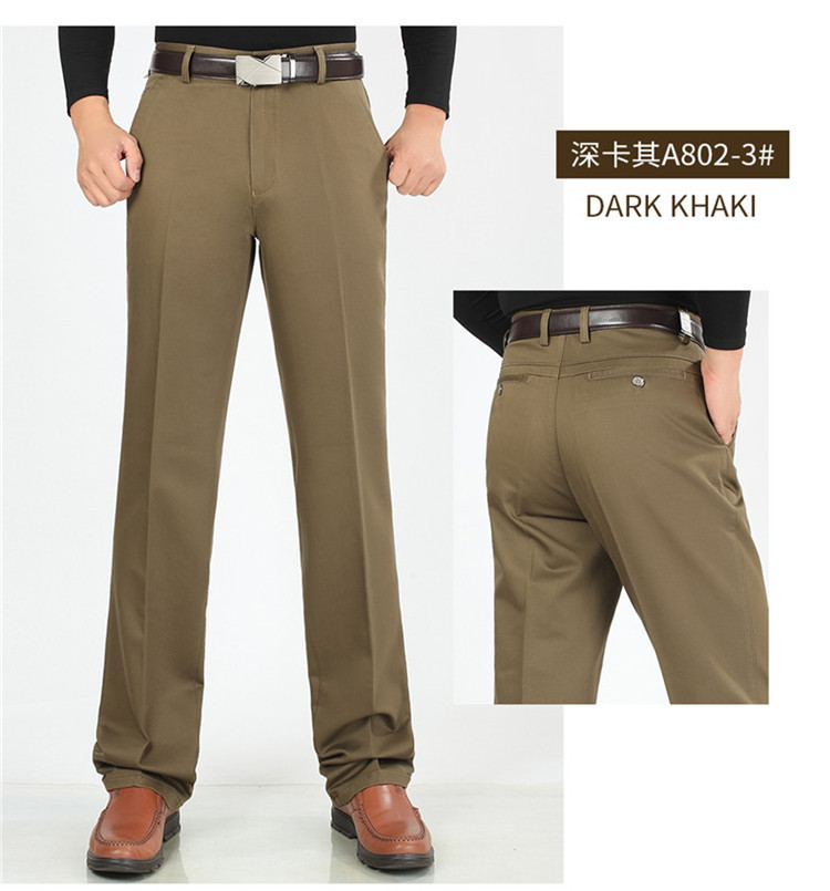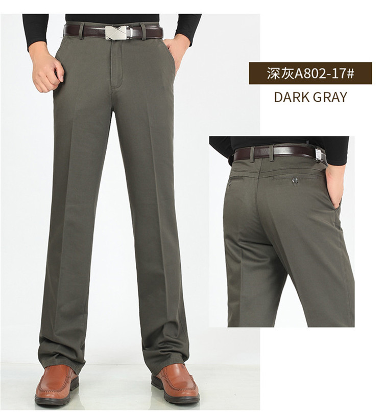 2025년 봄/가을 남성용 캐주얼 팬츠, 하이웨이스트, 깊은 허리선, 루즈핏, 신축성 있는 스트레이트 팬츠, 중장년층용, 순백색, 다림질 필요 없는 긴바지스토어 가기