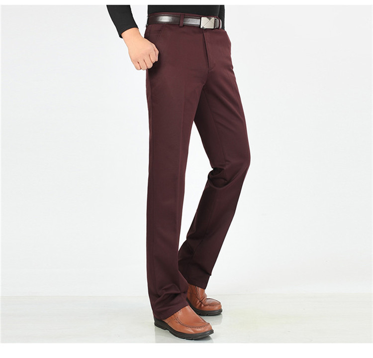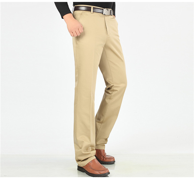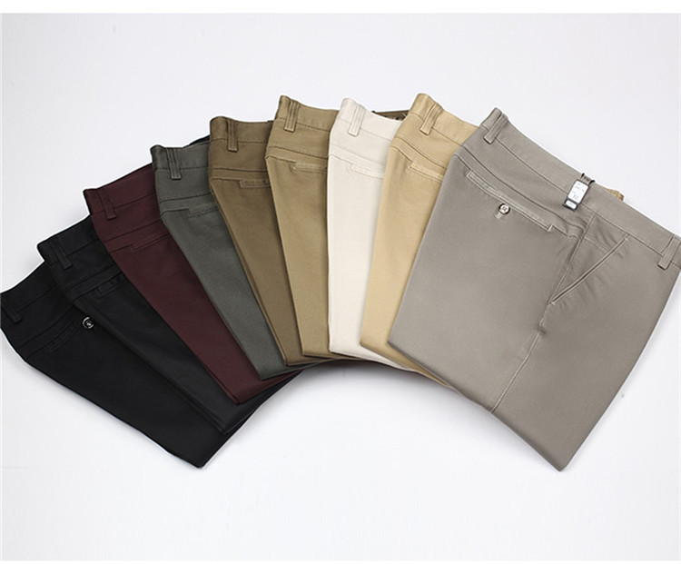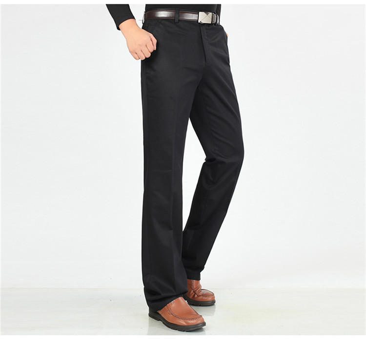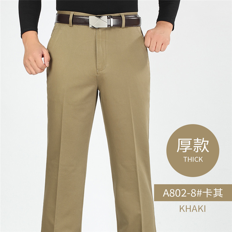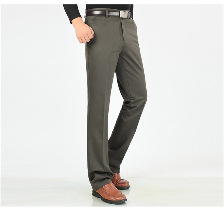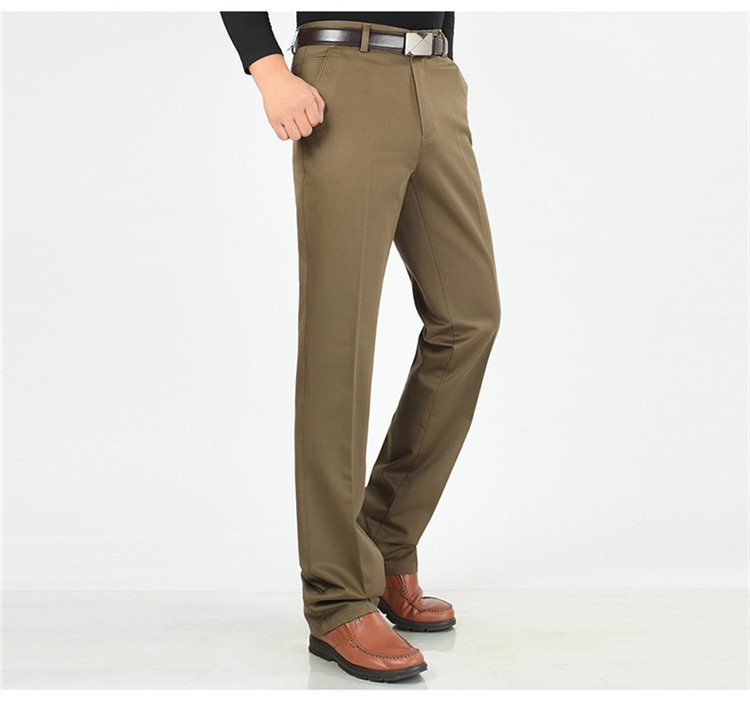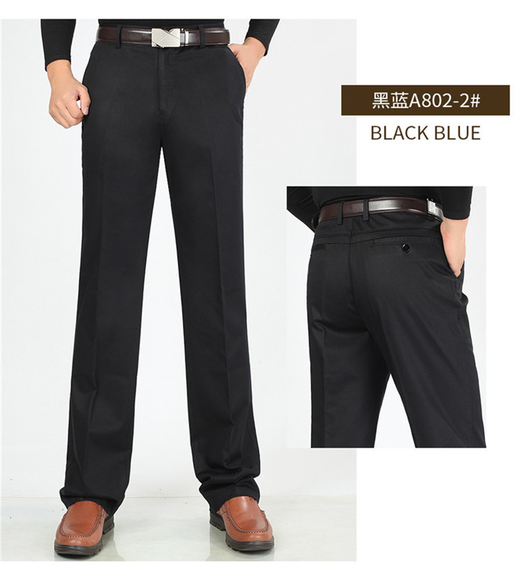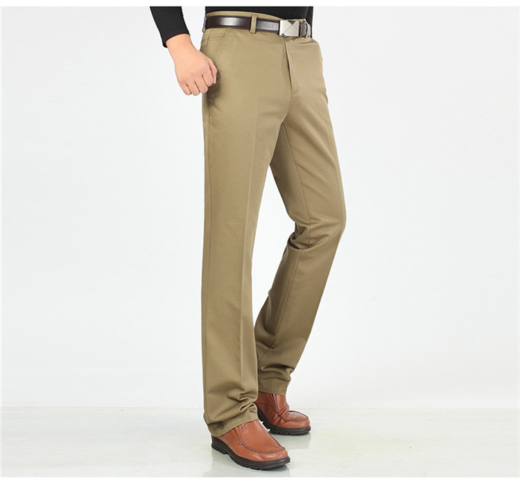 2025년 봄/가을 남성용 캐주얼 팬츠, 하이웨이스트, 깊은 허리선, 루즈핏, 신축성 있는 스트레이트 팬츠, 중장년층용, 순백색, 다림질 필요 없는 긴바지스토어 가기
