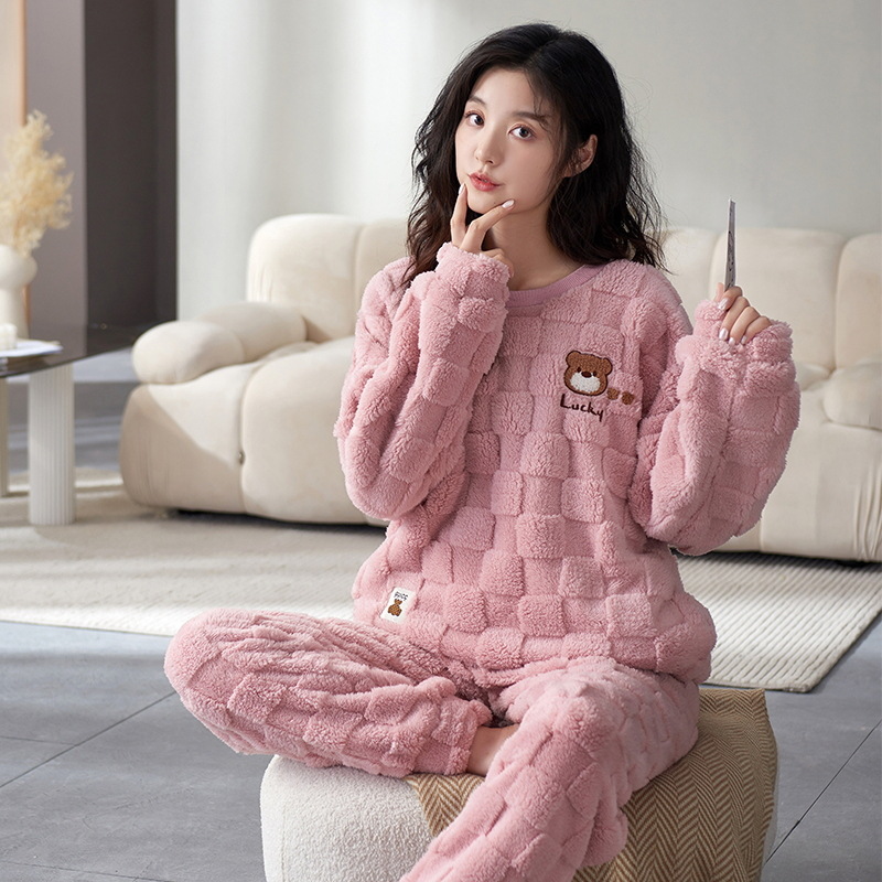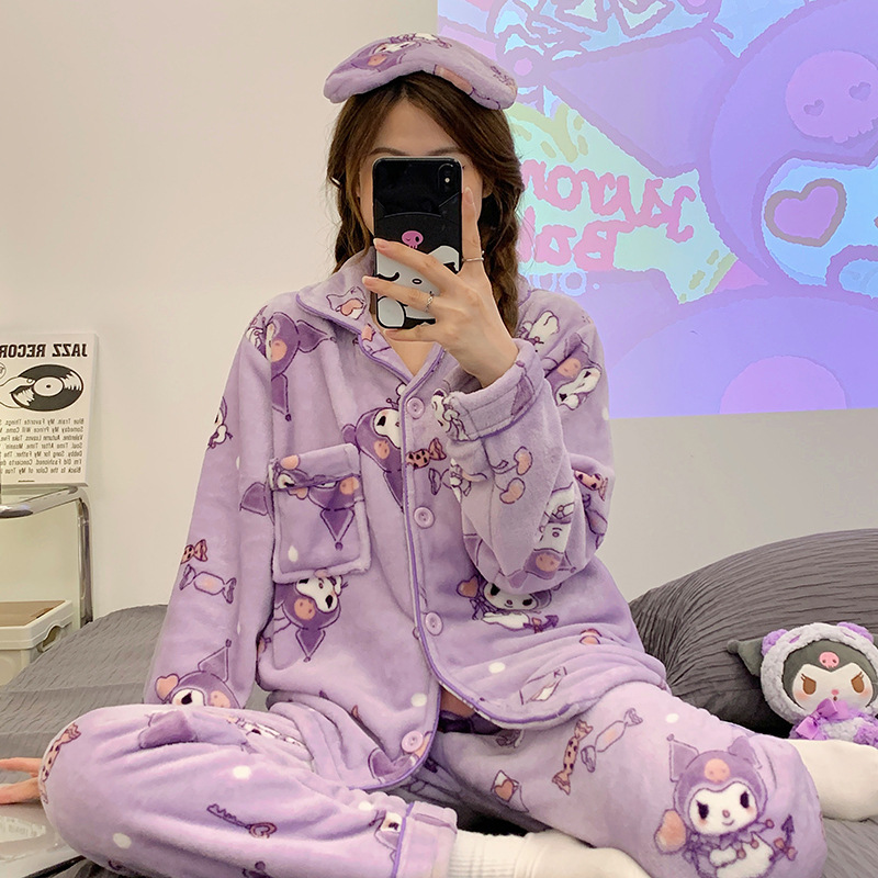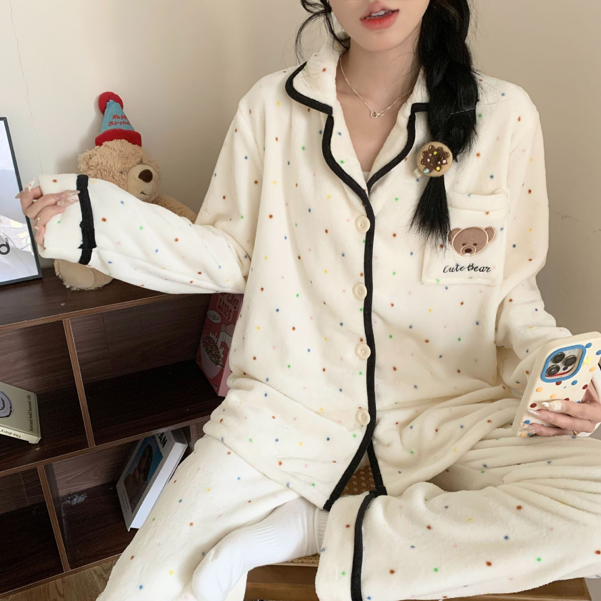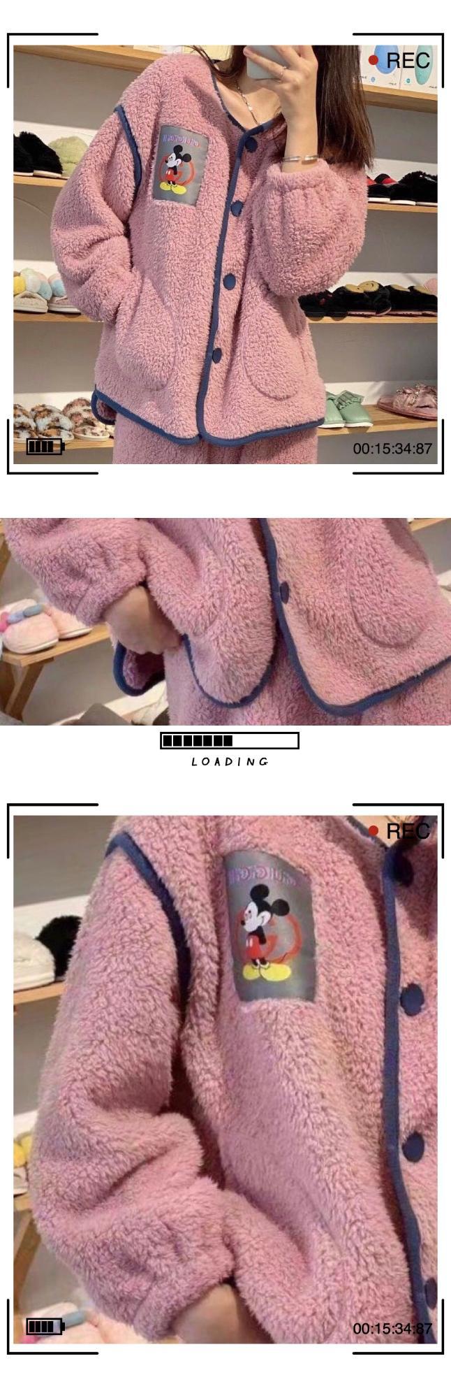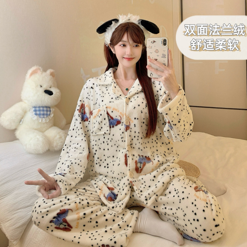 가을과 겨울 만화 산호 양털 두꺼운 가을과 겨울 여성의 따뜻한 잠옷 느슨한 캐주얼웨어 귀여운 가정 옷 세트스토어 가기