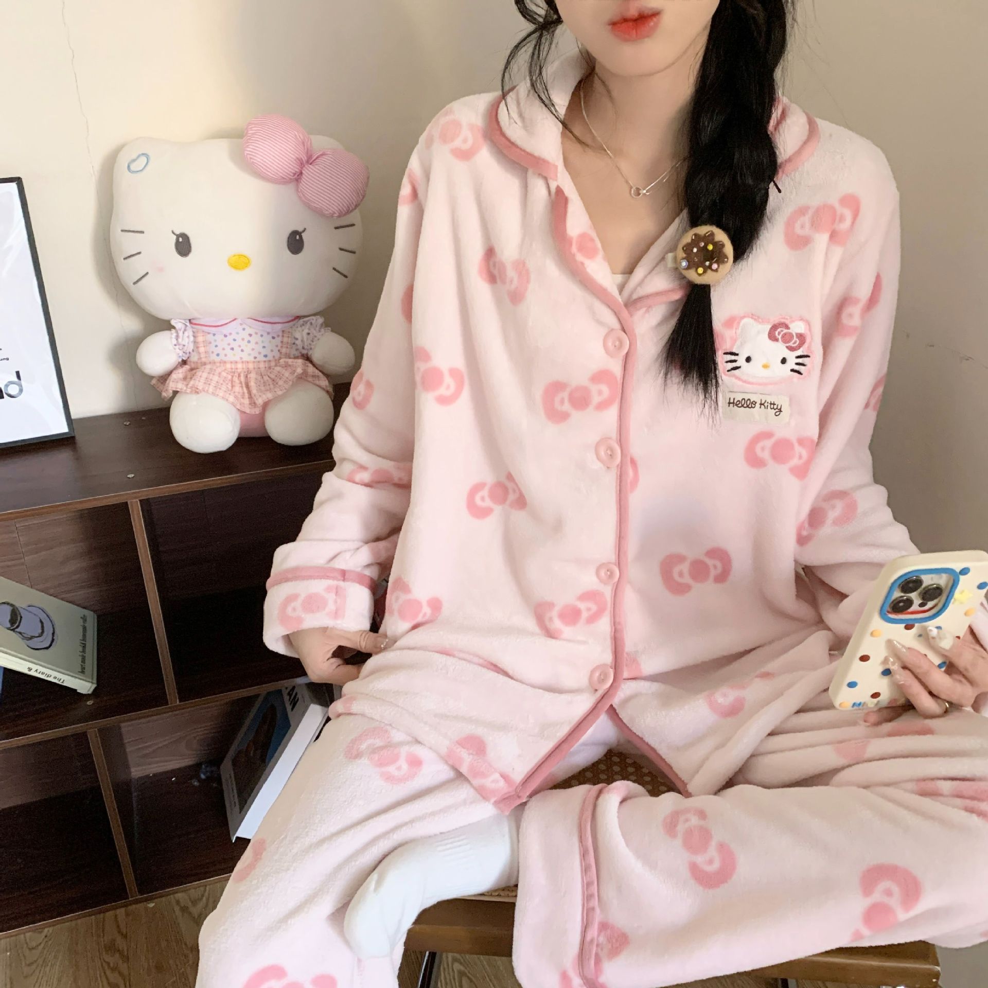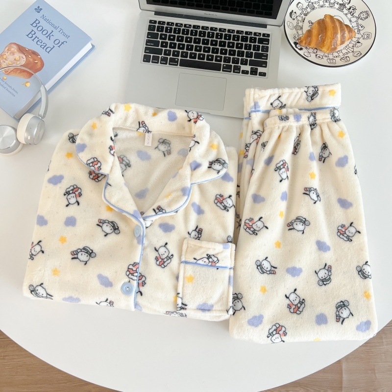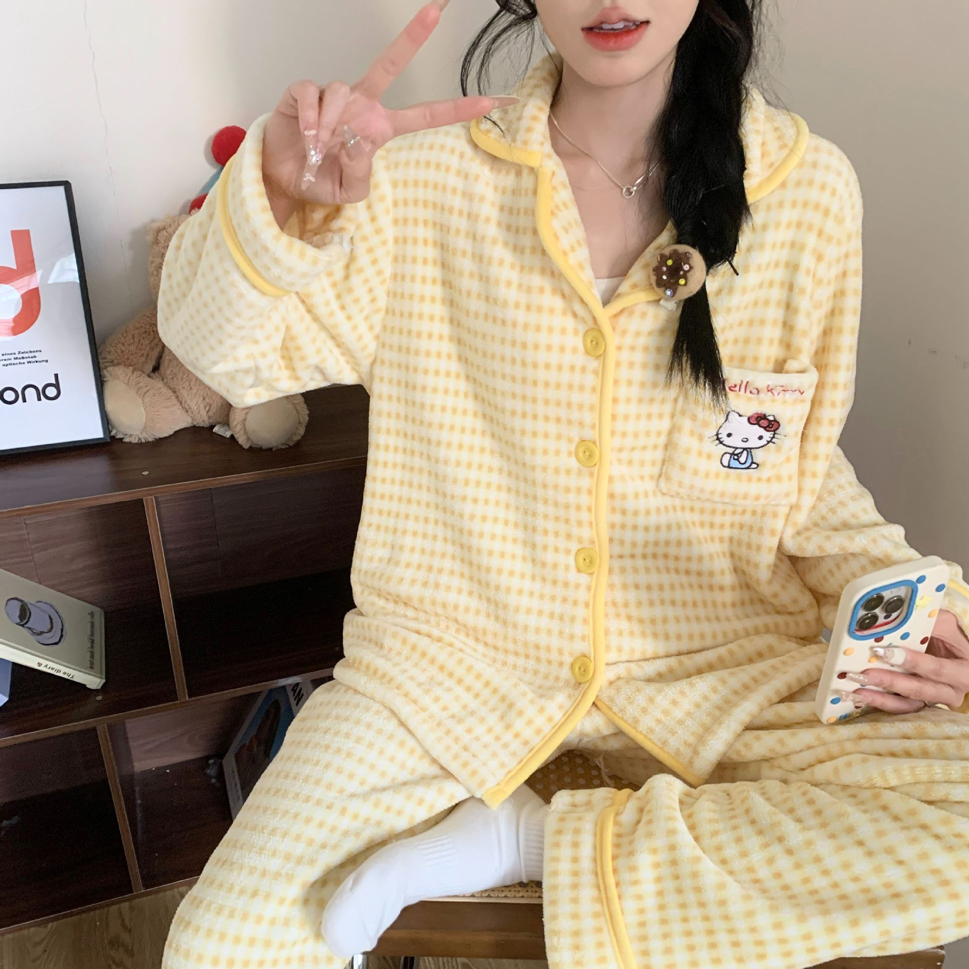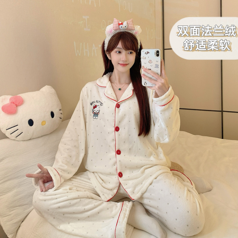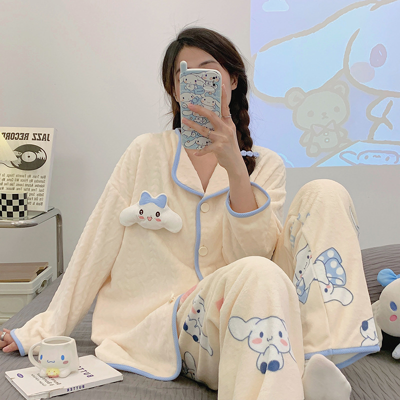 가을과 겨울 만화 산호 양털 두꺼운 가을과 겨울 여성의 따뜻한 잠옷 느슨한 캐주얼웨어 귀여운 가정 옷 세트스토어 가기