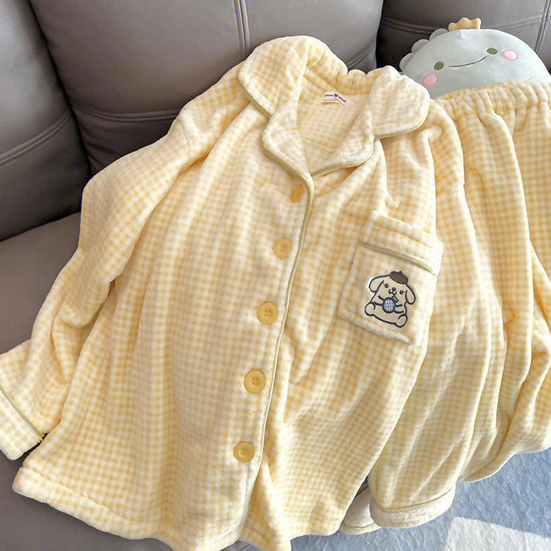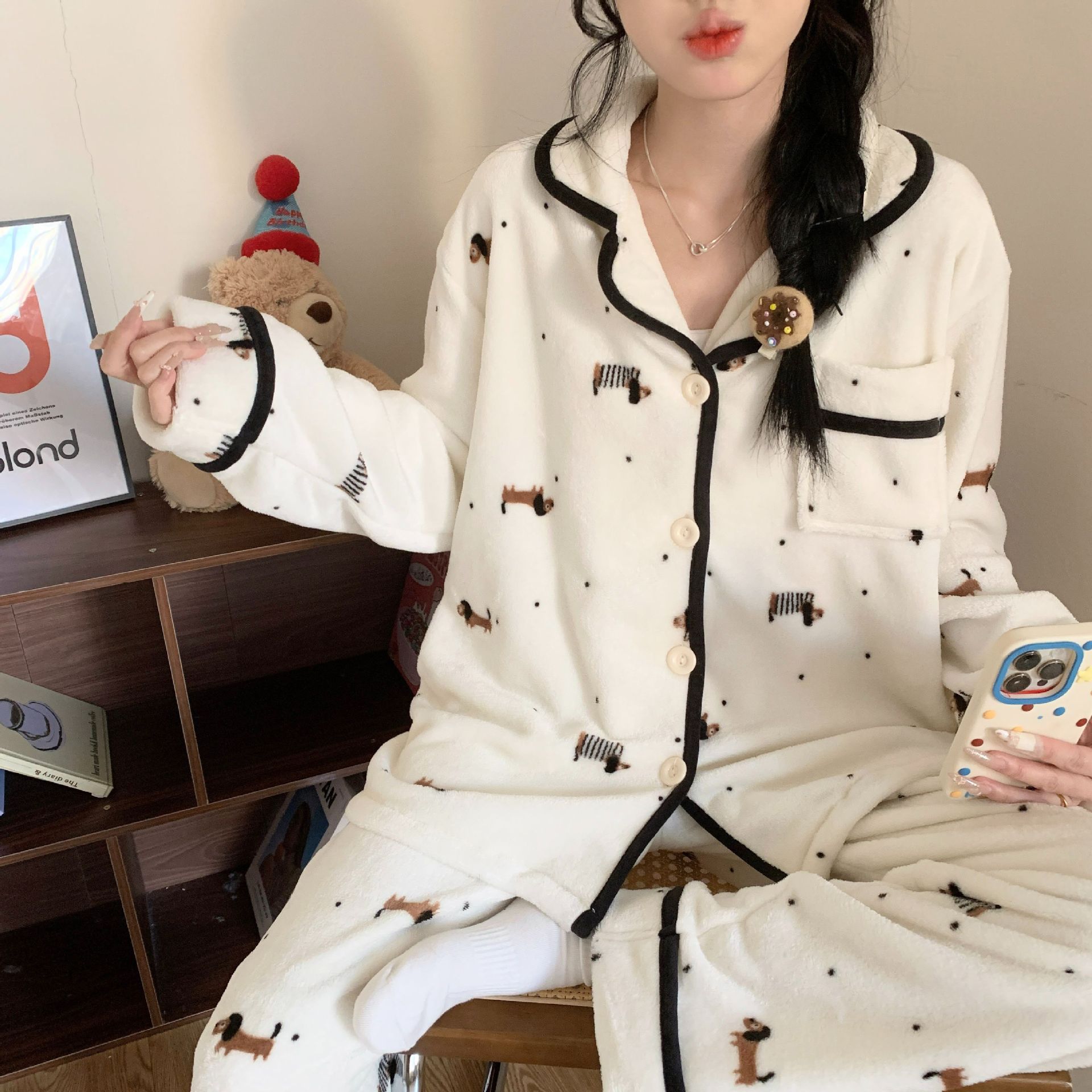 가을과 겨울 만화 산호 양털 두꺼운 가을과 겨울 여성의 따뜻한 잠옷 느슨한 캐주얼웨어 귀여운 가정 옷 세트