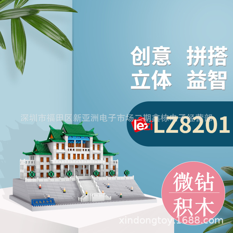 Lezi 크리에이티브 LZ8201 마이크로 다이아몬드 입자 빌딩 그레이트 홀 난이도 교육 조립 빌딩 블록 장난감스토어 가기