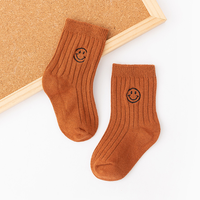 빈티지 어린이 양말 2023 가을과 겨울 새로운면 양말 단색 줄무늬 어린이 양말 남성 자수 웃는 얼굴 어린이 양말