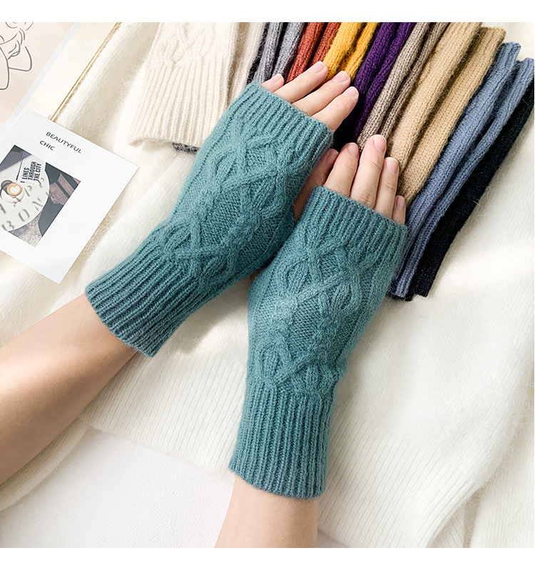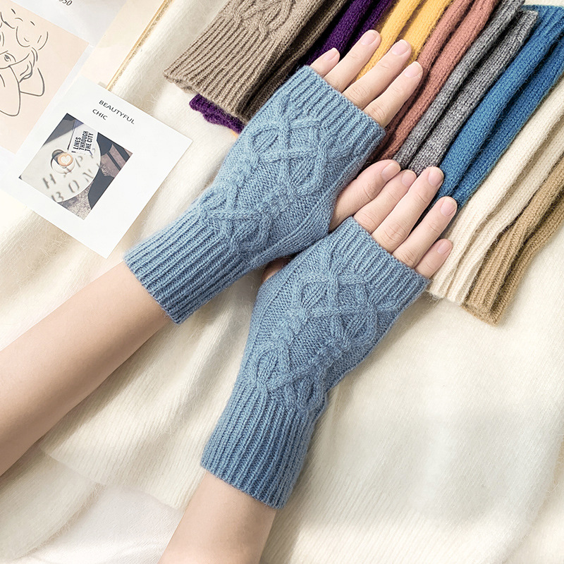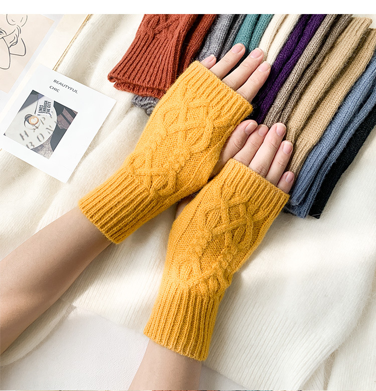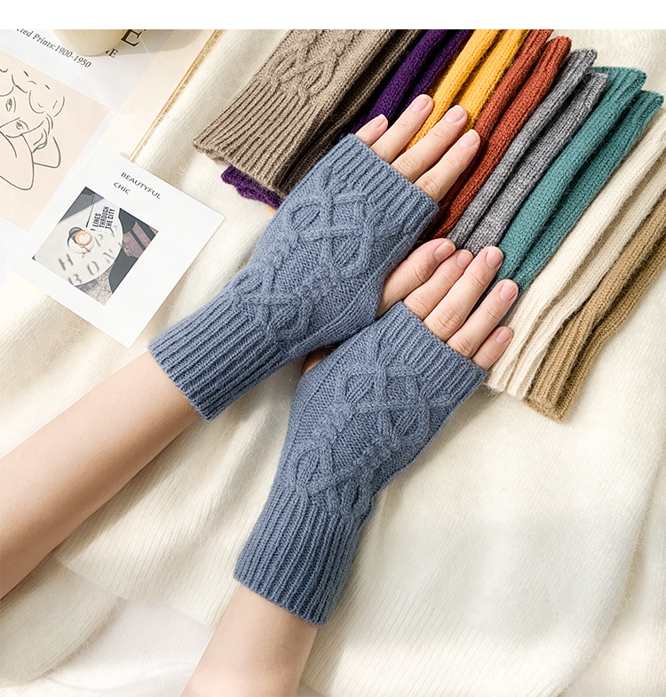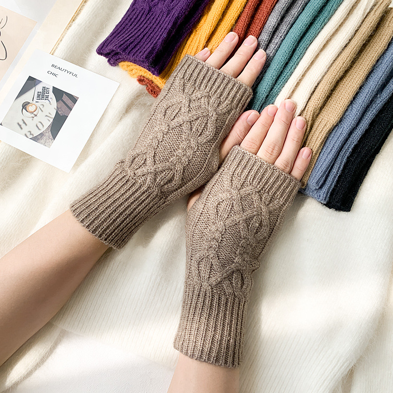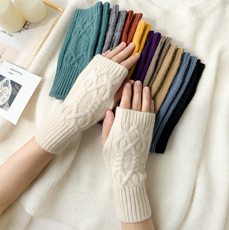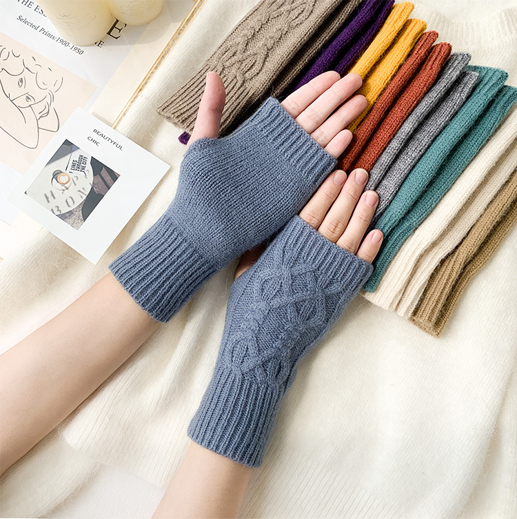 장갑 여성 가을, 겨울 반 손가락없는 반 손가락 장갑 학생 쓰기 양모 니트 따뜻한 장갑 국경 공급
