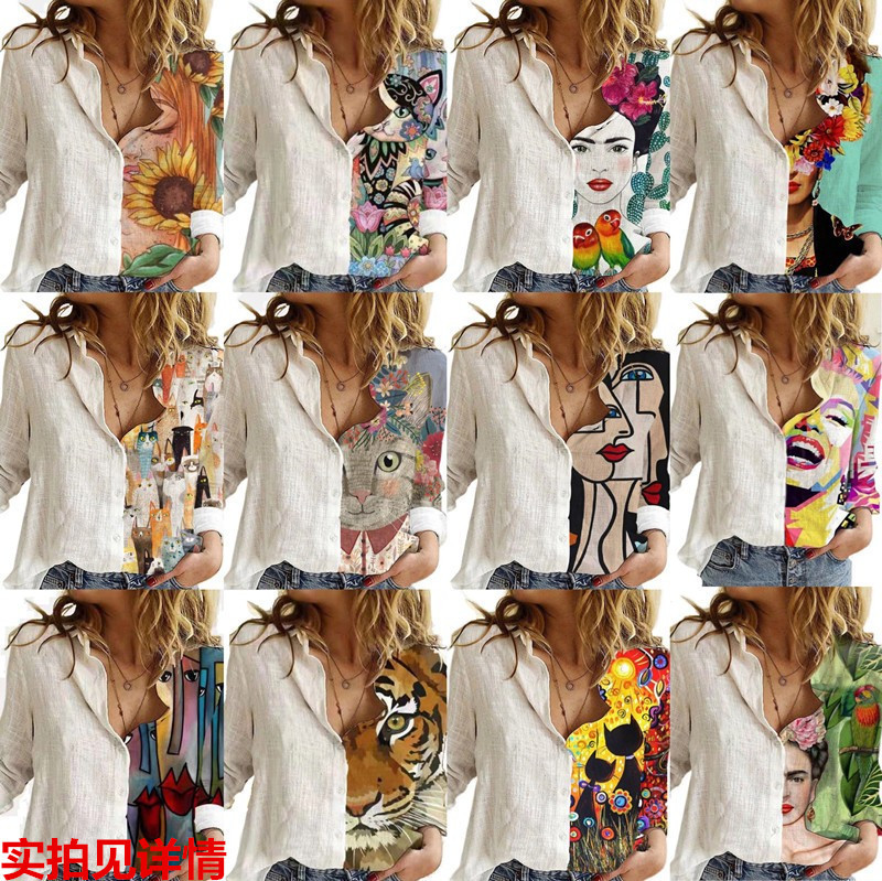 유럽 역 2024 대외 무역 AliExpress 소원 아마존 셔츠 새로운 인쇄 긴 소매 셔츠스토어 가기