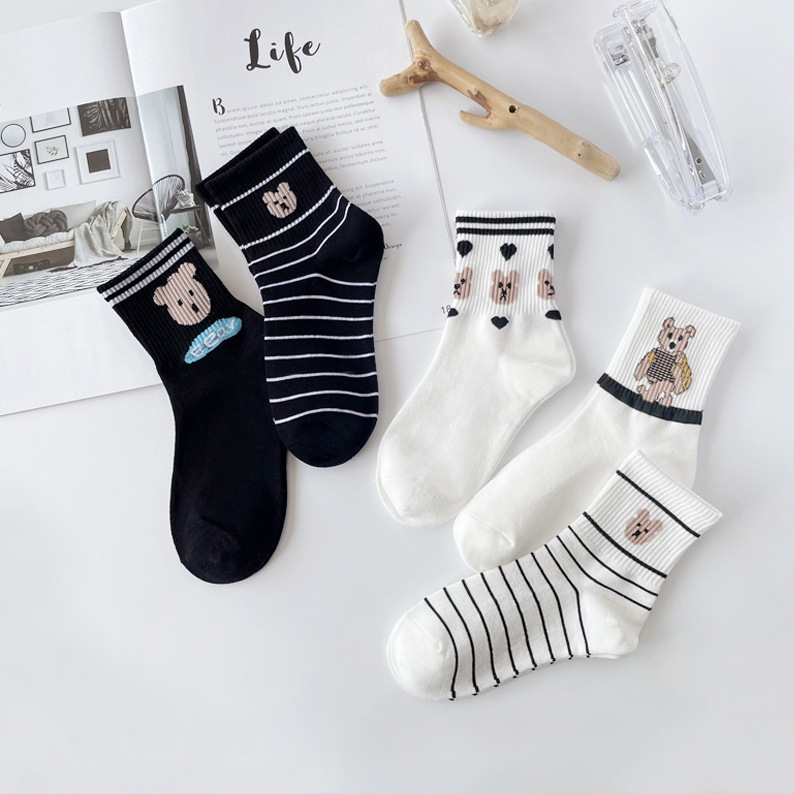 Ziyang 가을과 겨울 새로운 여성 양말 한국어 유행 양말 일본 양말 귀여운 만화 곰 양말 학생 양말