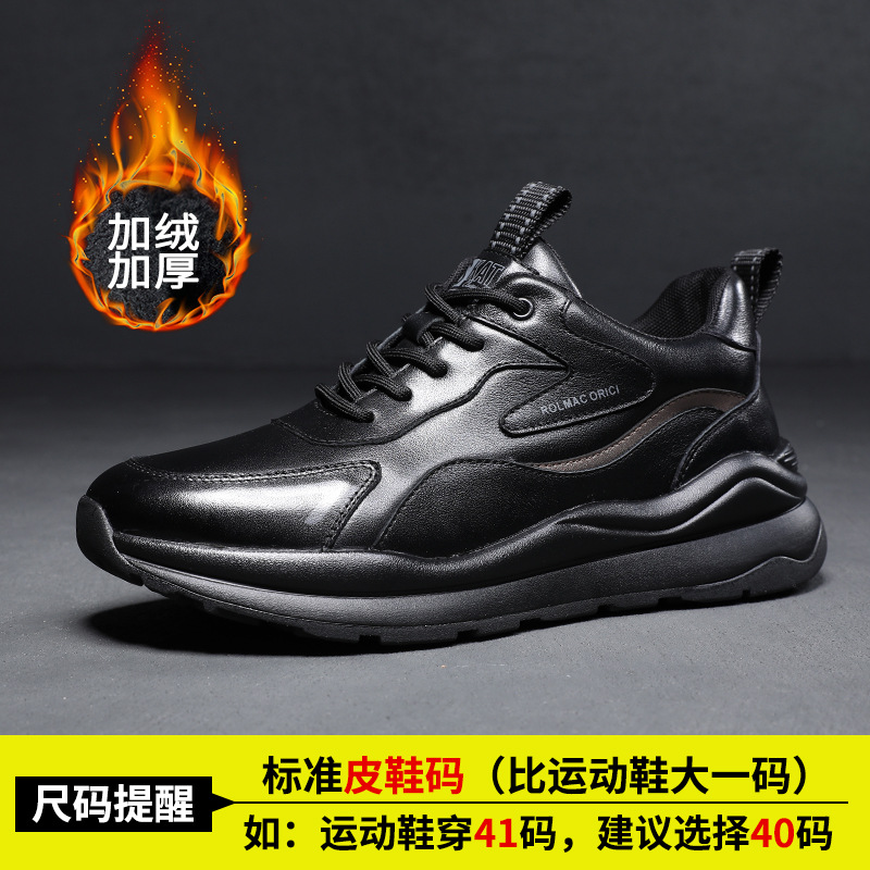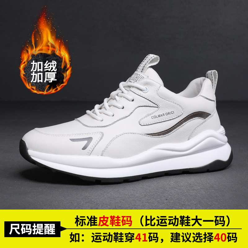 정품 가죽 운동화 남성 흰색 신발 새로운 첫 번째 레이어 소 가죽 캐주얼 신발 플러스 벨벳 다목적 두꺼운 밑창 아빠 신발 R1662스토어 가기