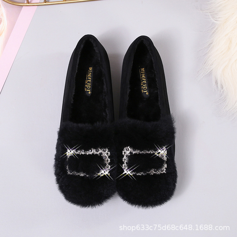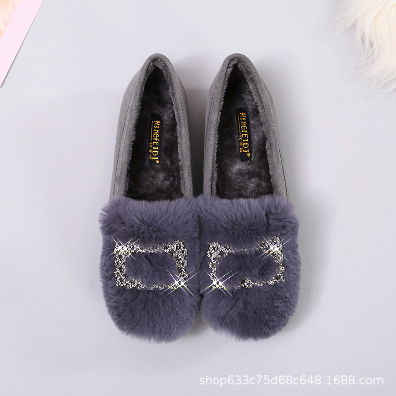 마오 마오 신발 여성의 2020 가을과 겨울 모든 경기 진짜 토끼 모피 신발 기모 콩 신발 여성의 사회 면화 신발의 새로운 한국어 버전스토어 가기