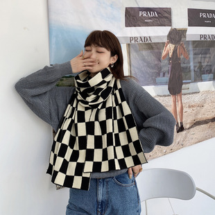 秋冬新款纺针织软格子仿羊绒围巾女韩版ins百搭披肩加厚保暖围脖
