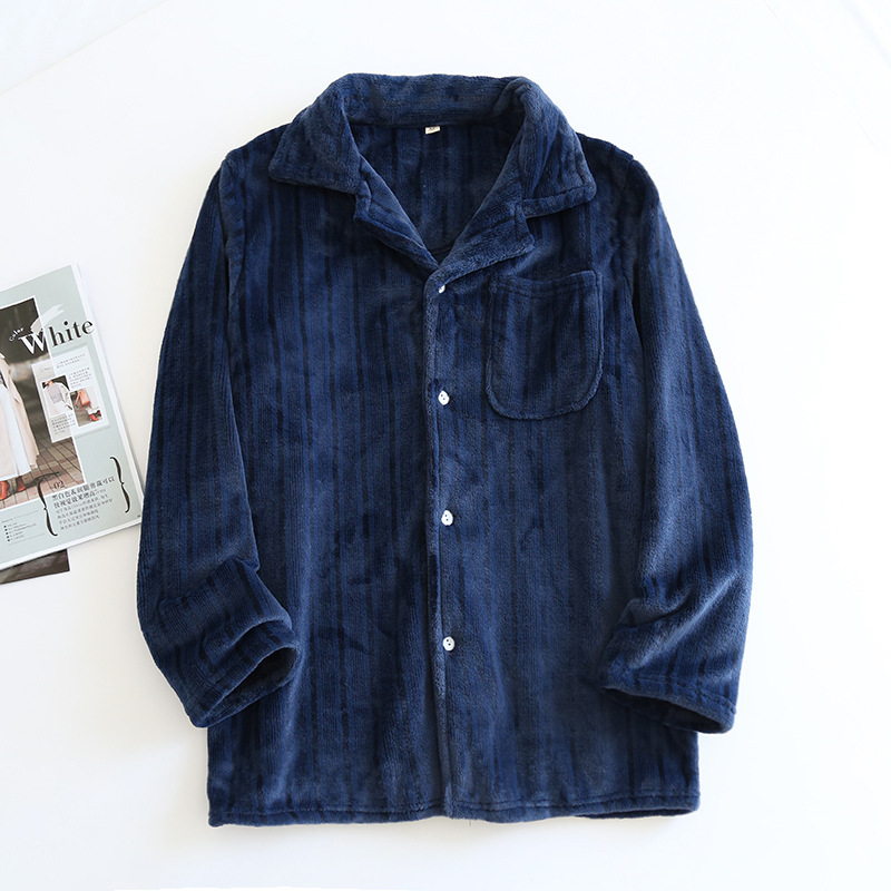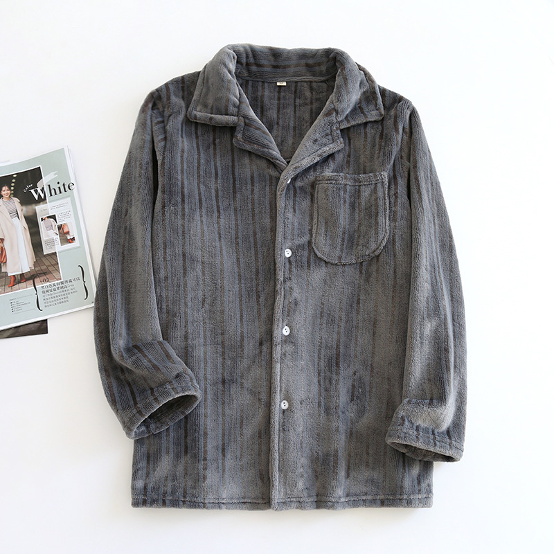 가을과 겨울 새로운 플란넬 스트라이프 잠옷 남자의 느슨한 따뜻한 두꺼운 카디건 탑 산호 양털 캐주얼 가정 의류스토어 가기