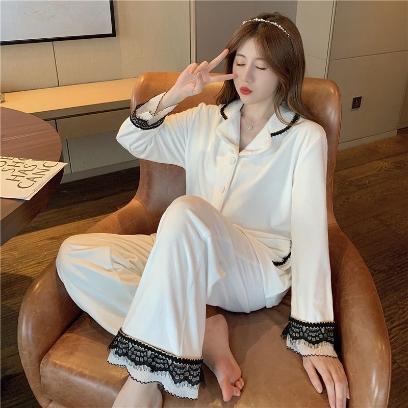 여성용 잠옷 21 새로운 가을과 겨울 두꺼운 양면 양털 슈퍼 소프트 카디건 편안한 레이스 우아한 긴팔 세트 가정 의류스토어 가기