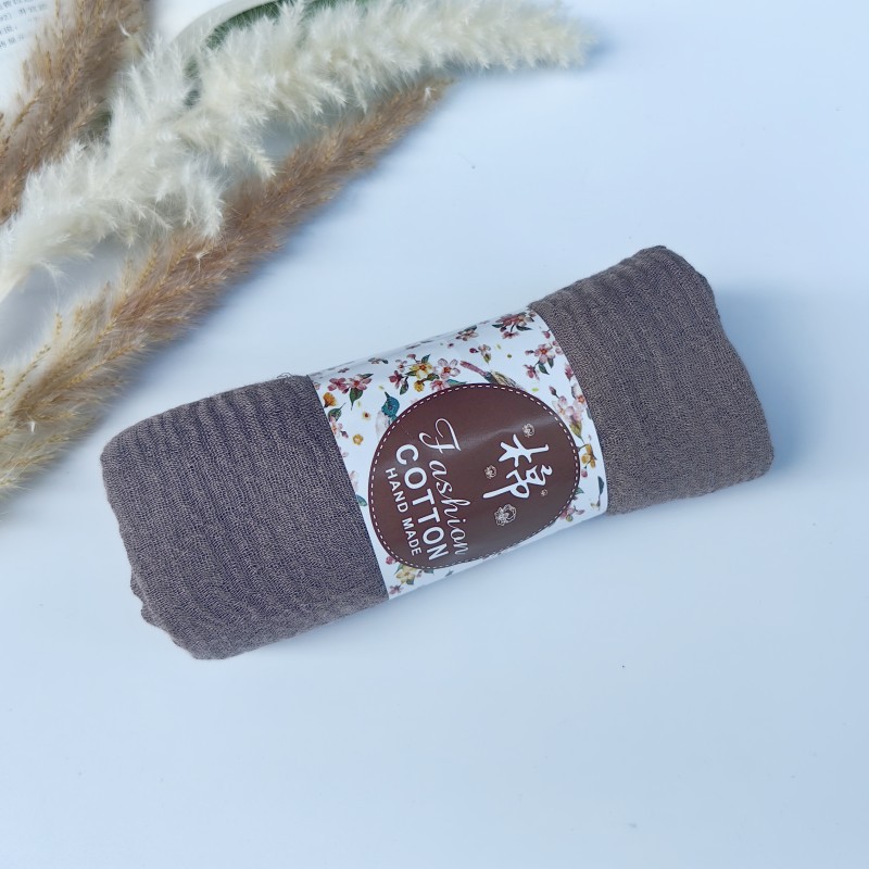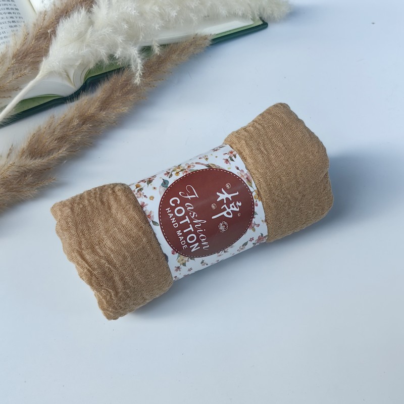 工厂直供褶皱纯色戒指绒TR棉自然皱棉麻毛须边泡泡纱巾