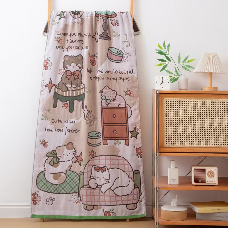 세면 목욕타월 자카드 면 목욕 스커트 소프트 통기성 땀 흡수 공장 도매 다층 거즈 목욕타월 5 단스토어 가기