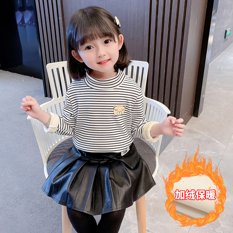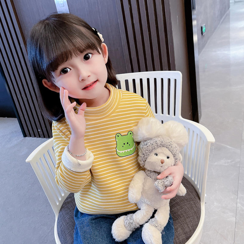 걸스 스트라이프 원피스 플리스 베이스 셔츠 2021 새로운 어린이 하프 하이 칼라 스웨터 어린이 두꺼운 따뜻한 탑 트렌디스토어 가기