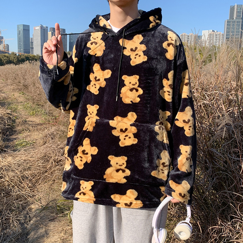 클리어런스 가격 가을 겨울 양털 후드티 남성용 후드 베어 코트 홍콩 스타일 두꺼운 옷 보온성 강화