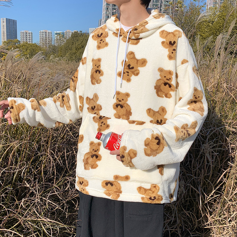 클리어런스 가격 가을 겨울 양털 후드티 남성용 후드 베어 코트 홍콩 스타일 두꺼운 옷 보온성 강화스토어 가기