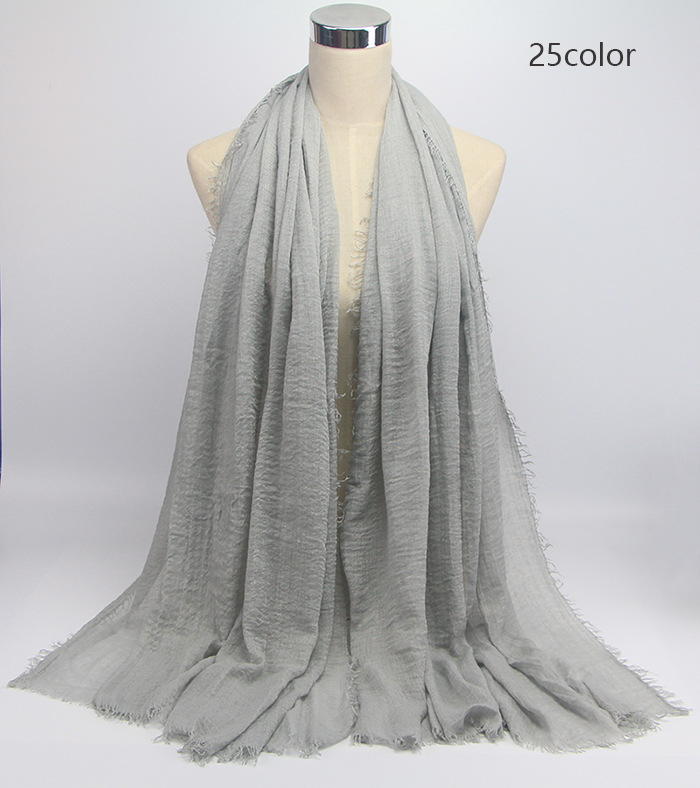 면과 린넨 느낌의 주름 장식 머리 스카프 여성용 스카프 도매스토어 가기
