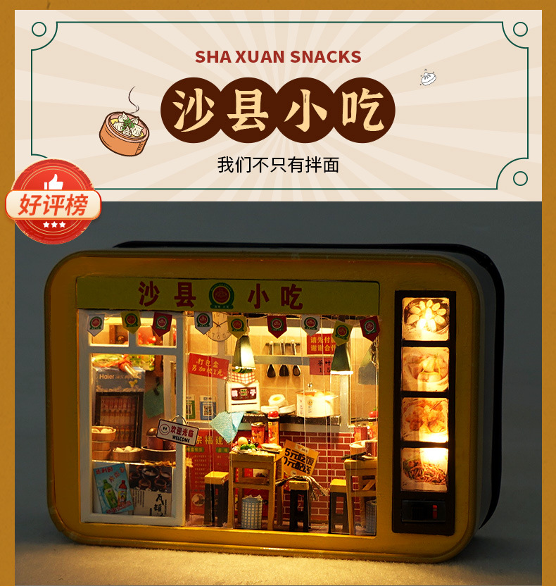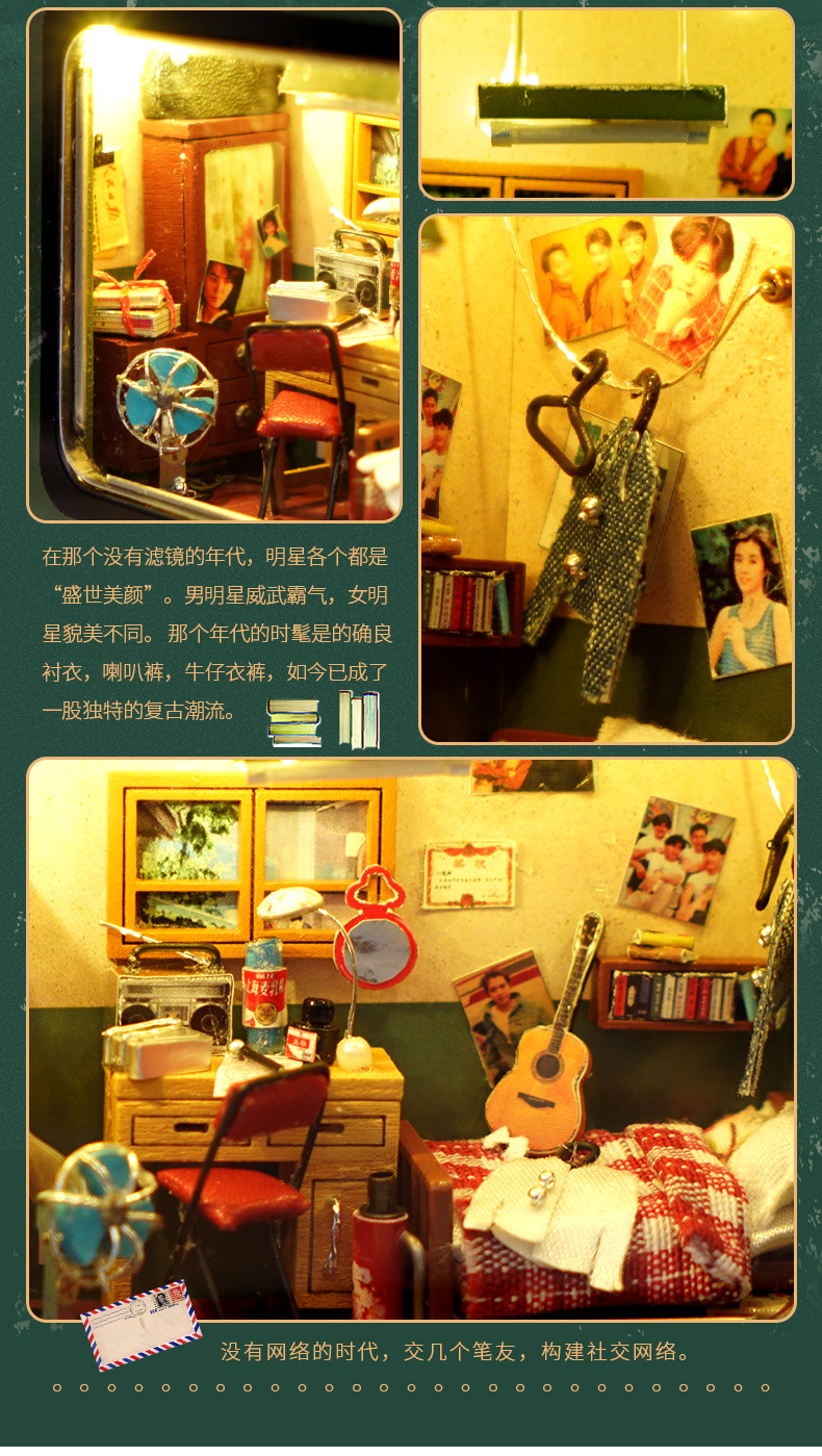 小屋的材质如同真实的房子,例如柜子由木头做成,窗帘布头做成,书本由纸头做成!
