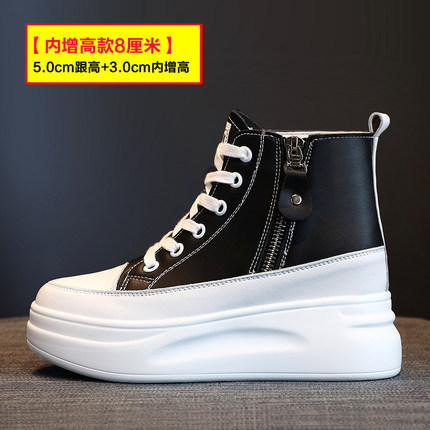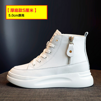 마틴 부츠 증가 흰색 신발 여성용 두꺼운 바닥 소가죽 지퍼 플랫폼 바닥 2021 가을과 겨울 새로운 원피스 헤어스토어 가기