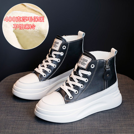 마틴 부츠 증가 흰색 신발 여성용 두꺼운 바닥 소가죽 지퍼 플랫폼 바닥 2021 가을과 겨울 새로운 원피스 헤어
