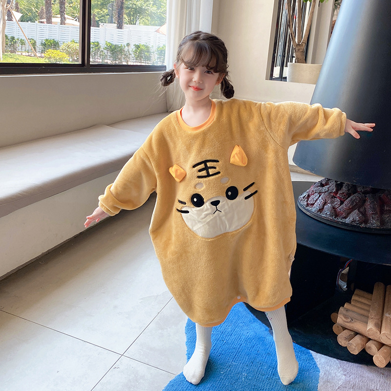 어린이 따뜻한 잠옷 아기 스웨이드 가정복 남성과 여성을위한 플란넬 침낭 3-12 세 봄과 가을스토어 가기