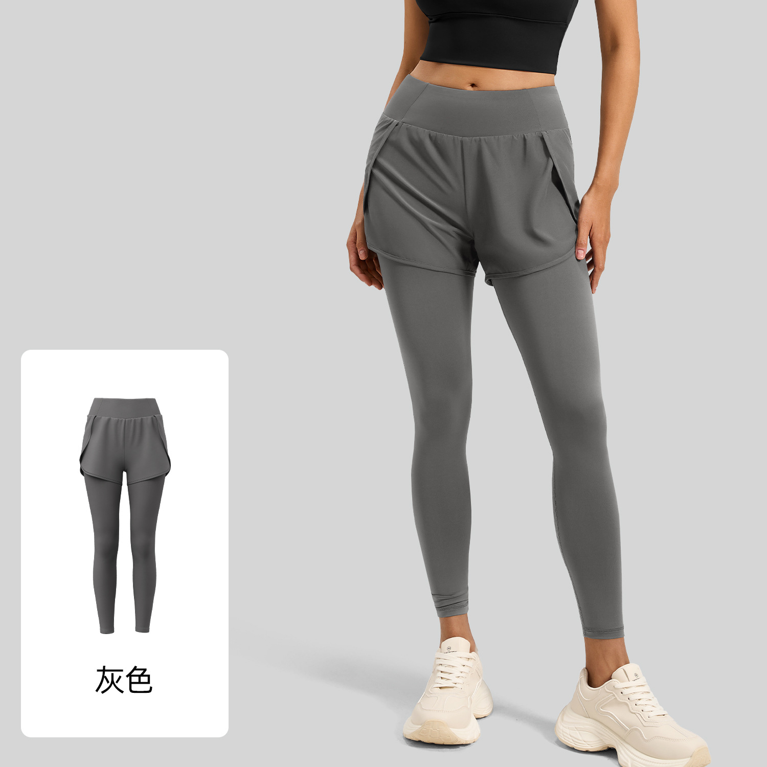 Juyitang 가짜 투피스 스포츠 꽉 끼는 여성의 높은 허리 탄성 엉덩이 리프팅 작은 피트 피트니스 러닝 포켓 요가 바지