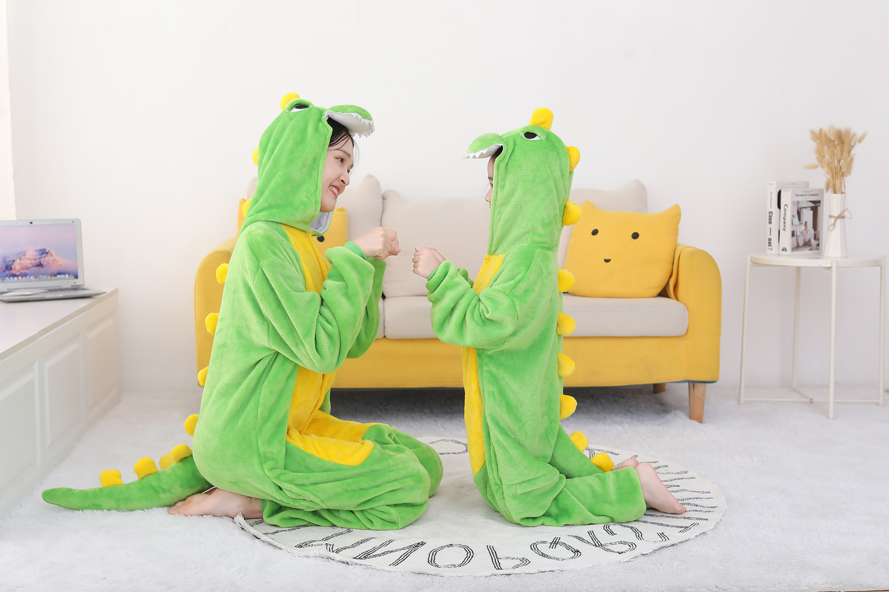 가을과 겨울 만화 원피스 부모-자식 잠옷 공룡 플란넬 퍼포먼스 의상 레저 홈 의류 한 세대 도매스토어 가기