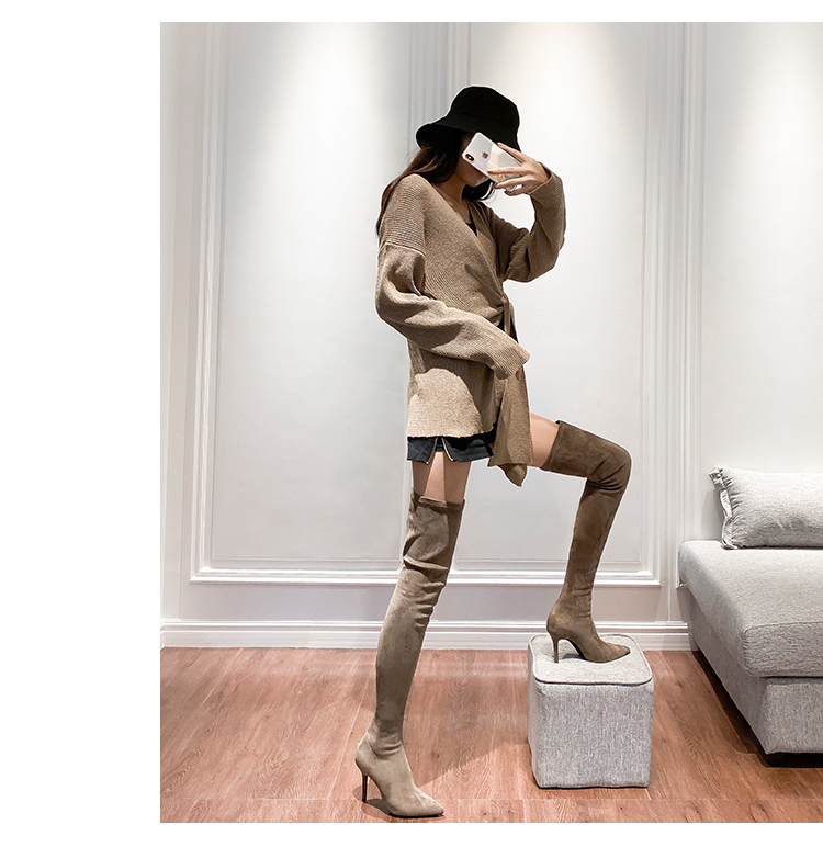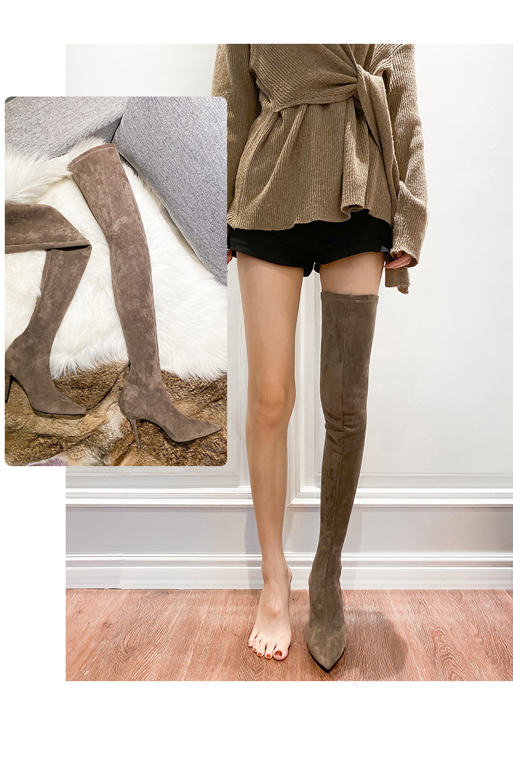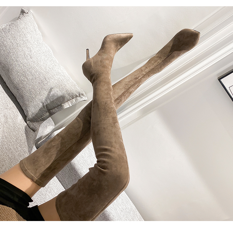 2025 봄 가을 슬림핏 무릎 위까지 오는 롱부츠 여성용 스틸레토 힐 허벅지까지 오는 초롱굽 부츠 플러스 사이즈 탄력 부츠 슬림 효과