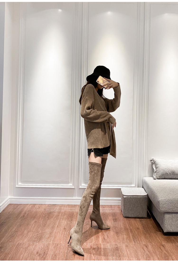 2025 봄 가을 슬림핏 무릎 위까지 오는 롱부츠 여성용 스틸레토 힐 허벅지까지 오는 초롱굽 부츠 플러스 사이즈 탄력 부츠 슬림 효과스토어 가기