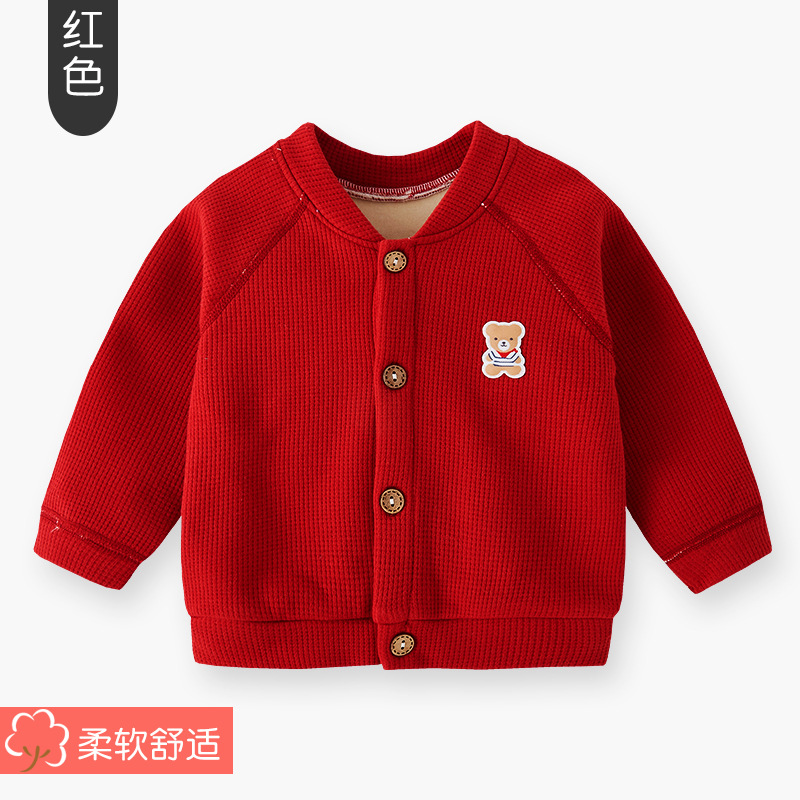 아기의 가을 짧은 코트 어린이 레드 따뜻한 재킷 베이비 부머 니트 가디건 두꺼운 겨울 탑