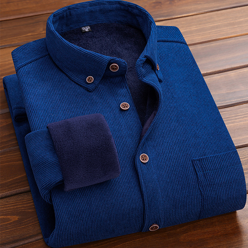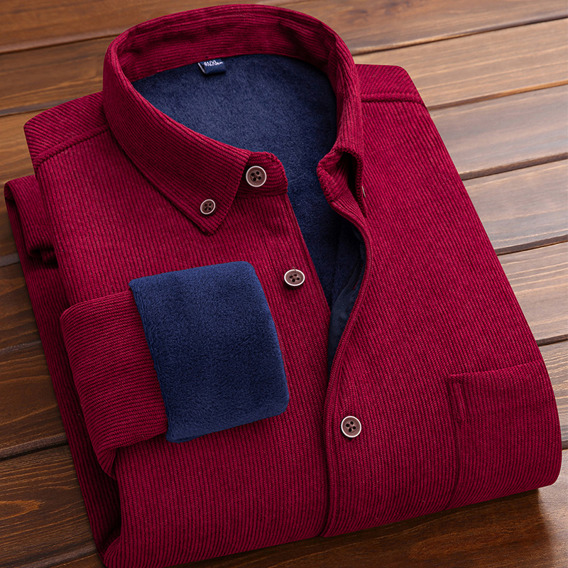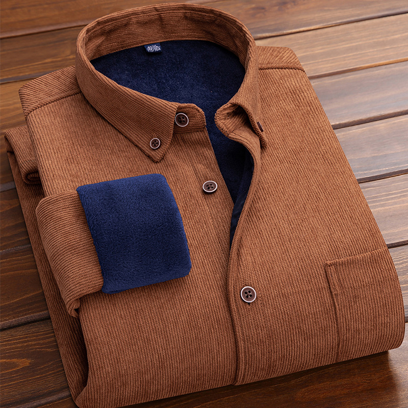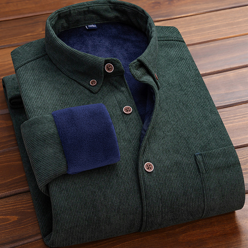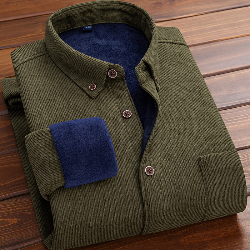 코듀로이 남자의 따뜻한 셔츠 가을과 겨울 기모 두꺼운 단색 패션 캐주얼 비즈니스 셔츠 플러스 사이즈 탑스토어 가기