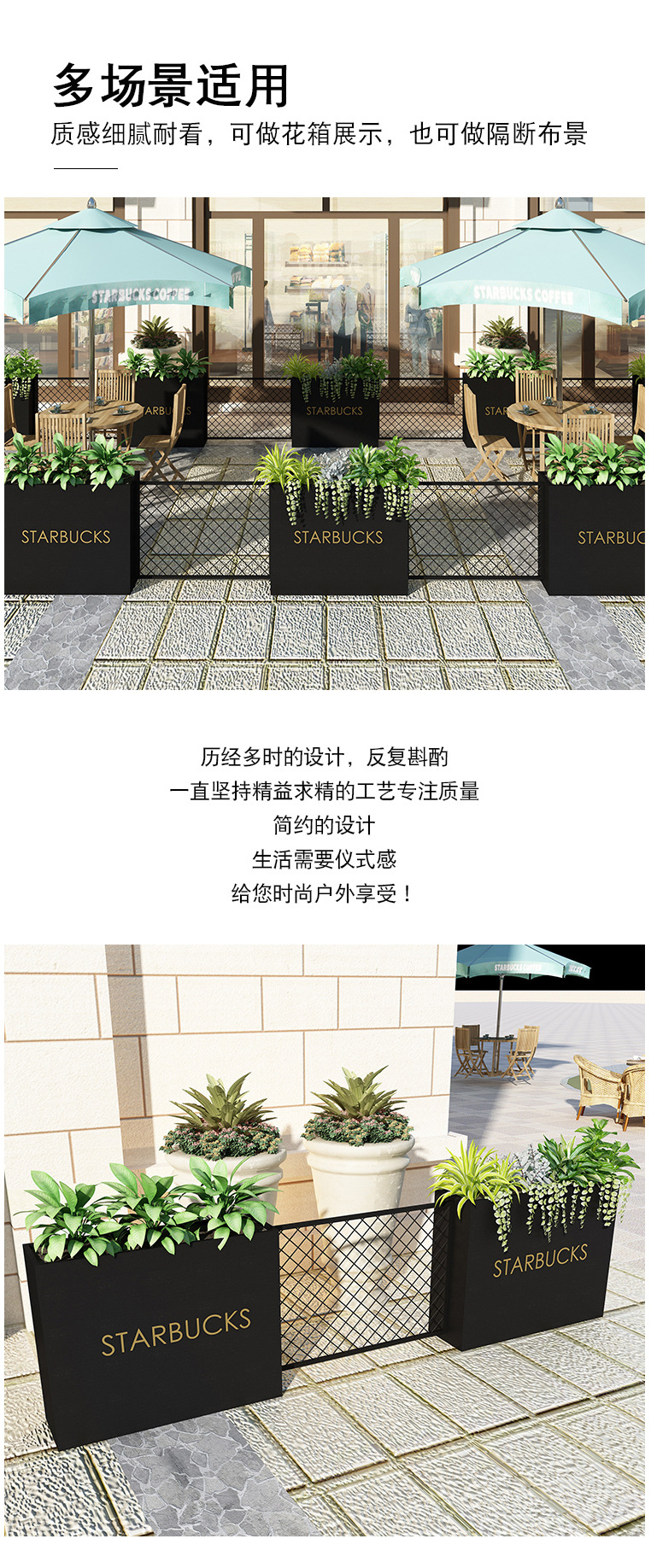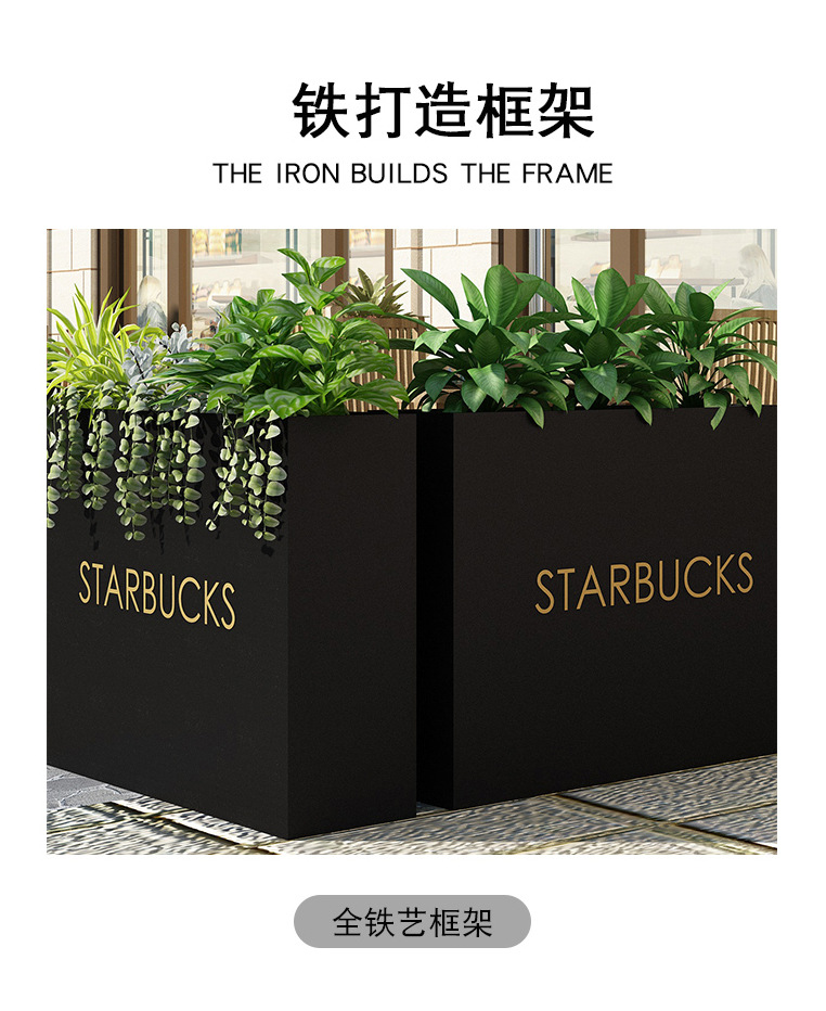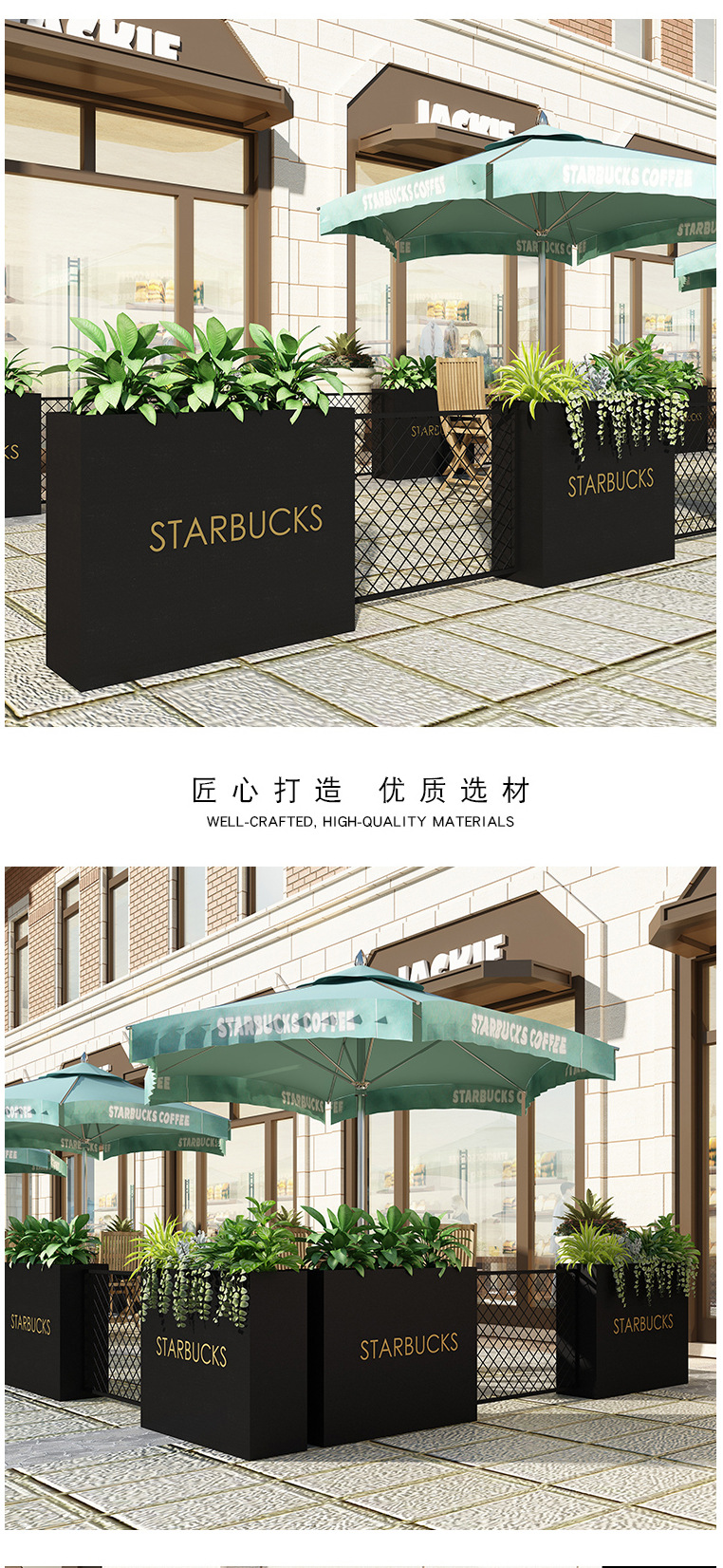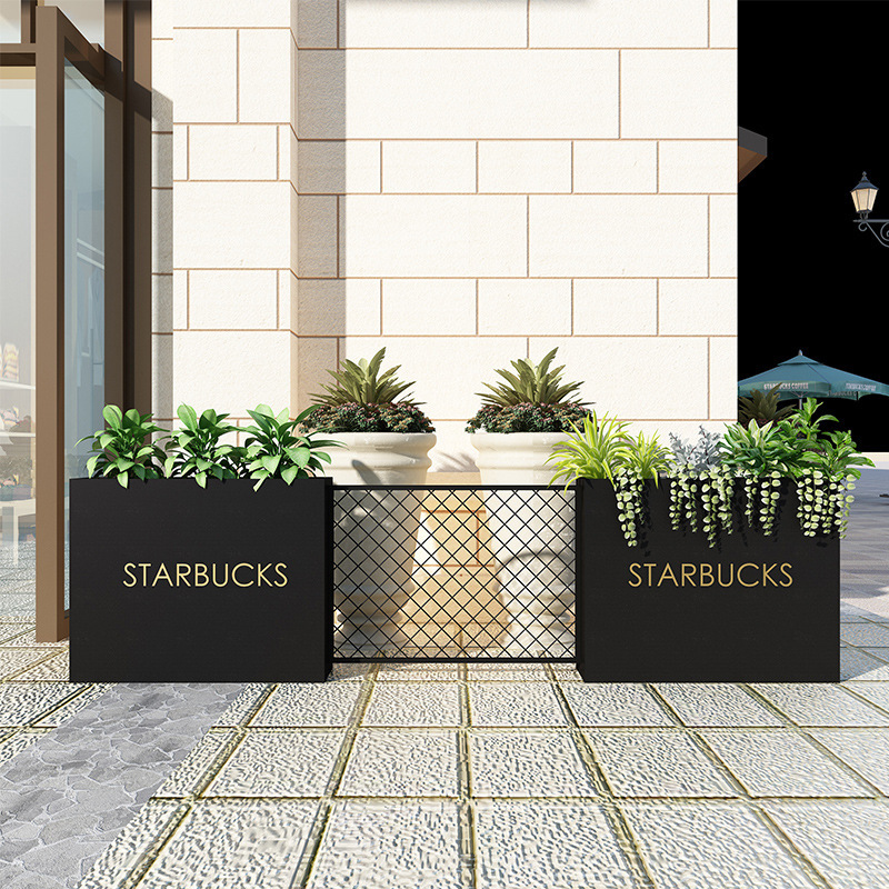 북유럽 야외 꽃 상자 울타리 조합 단철 직사각형 그리드 파티션 꽃 그루브 카페 외부 녹색 식물 화단스토어 가기