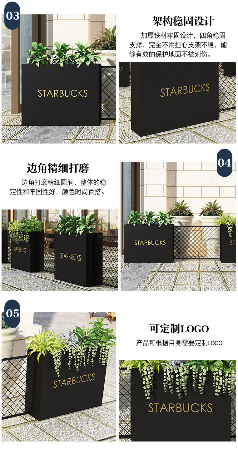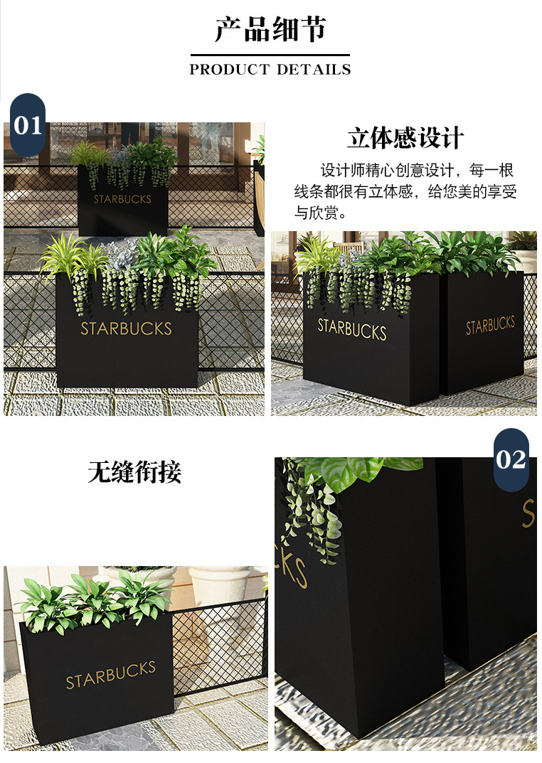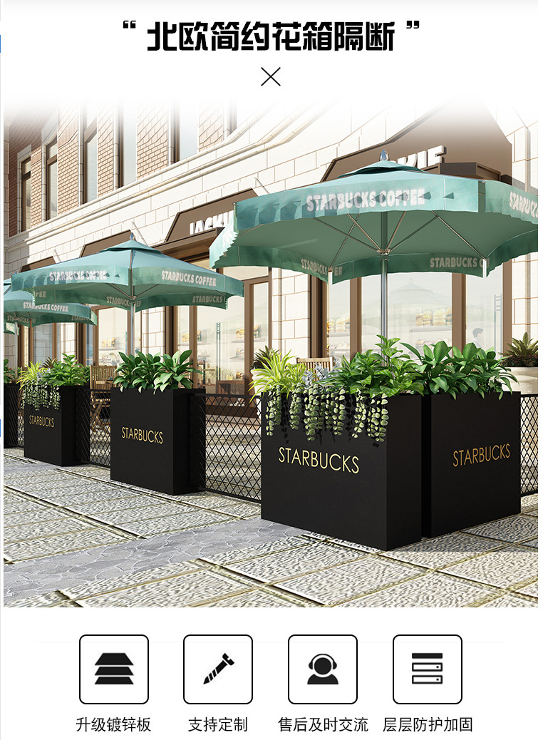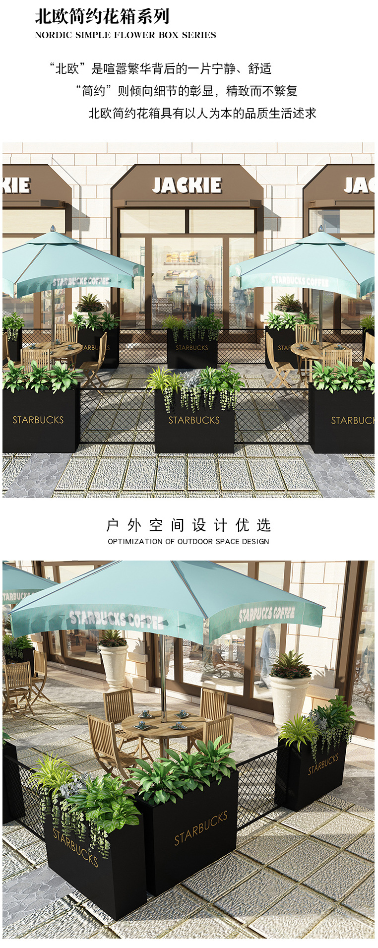 북유럽 야외 꽃 상자 울타리 조합 단철 직사각형 그리드 파티션 꽃 그루브 카페 외부 녹색 식물 화단스토어 가기