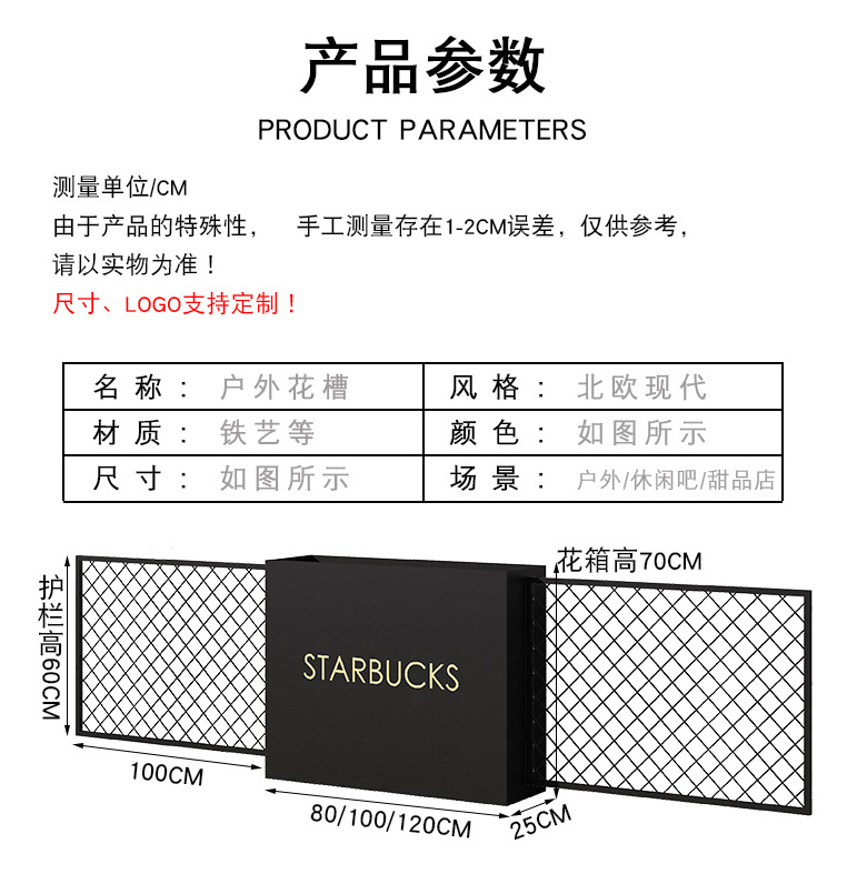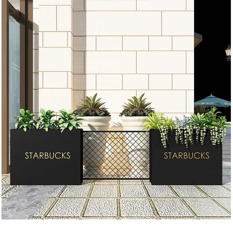 북유럽 야외 꽃 상자 울타리 조합 단철 직사각형 그리드 파티션 꽃 그루브 카페 외부 녹색 식물 화단