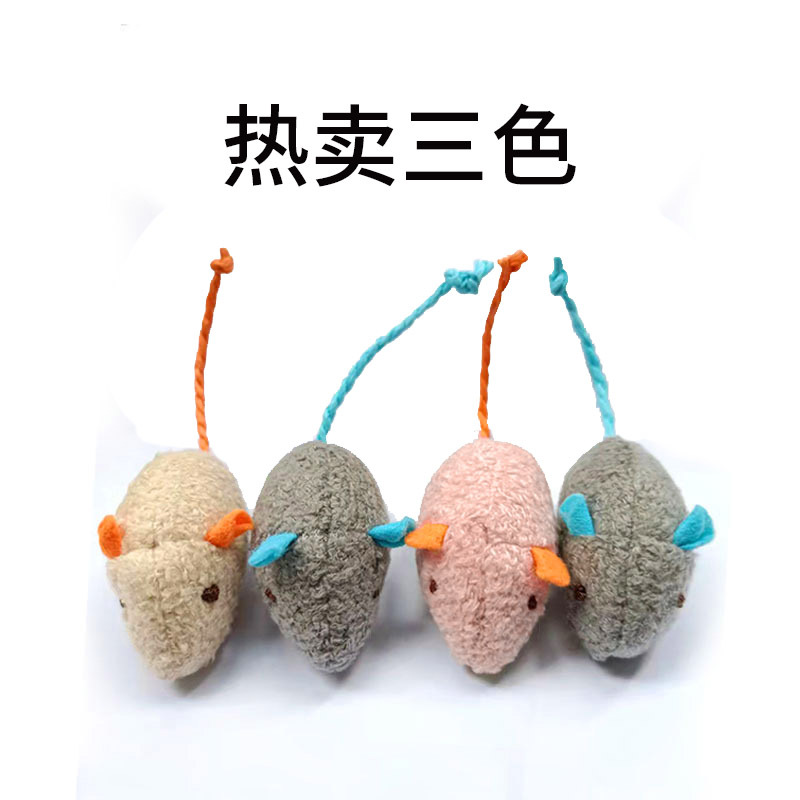 猫咪仿耐抓咬磨牙真毛绒老鼠玩偶套装 羽毛老鼠宠物用品玩具