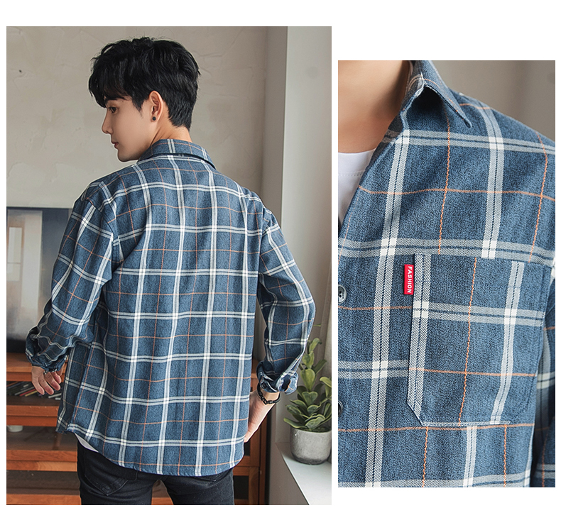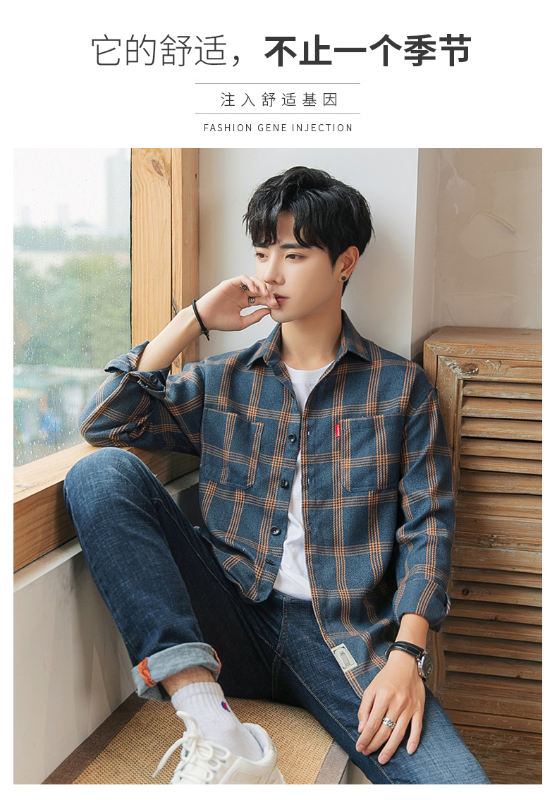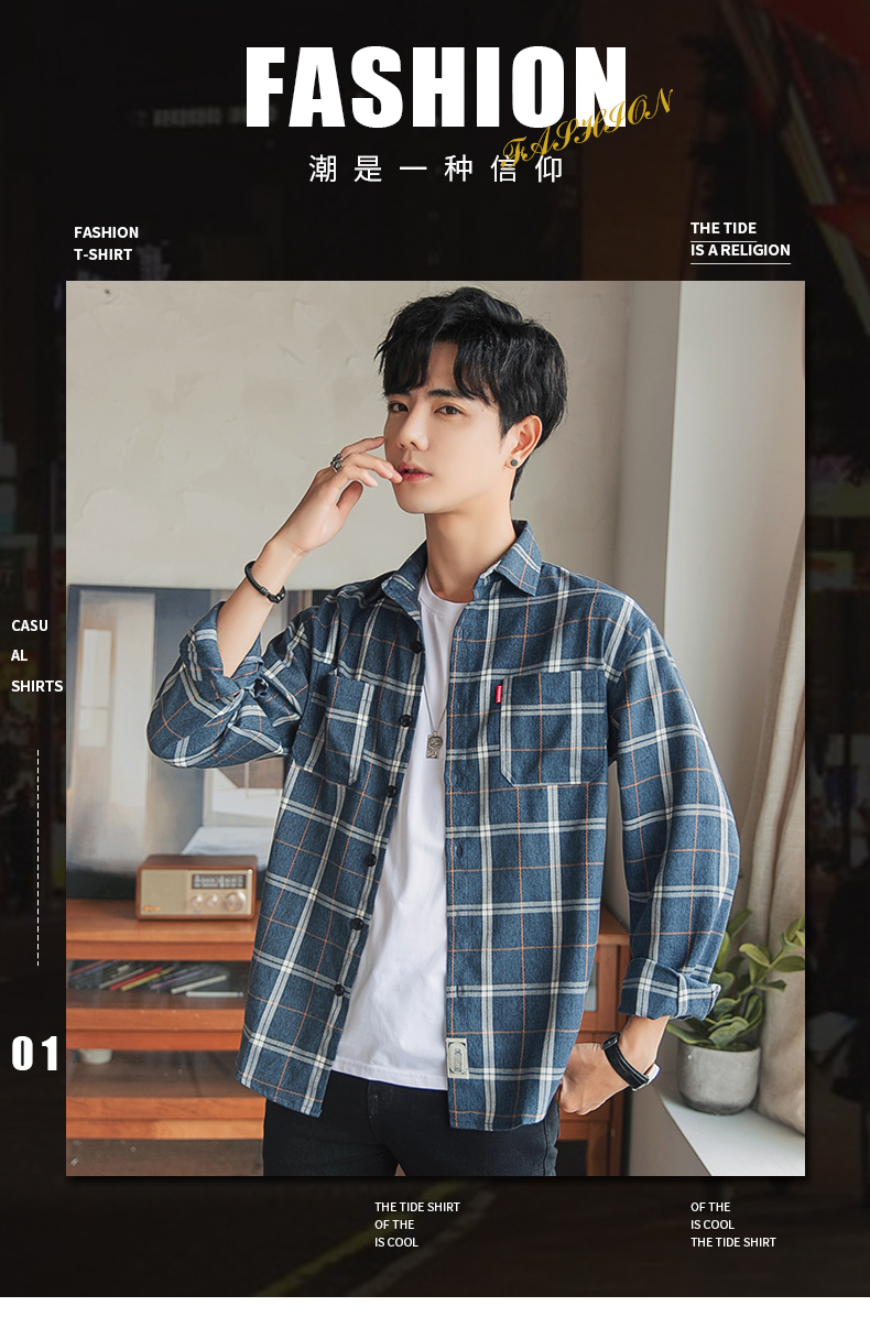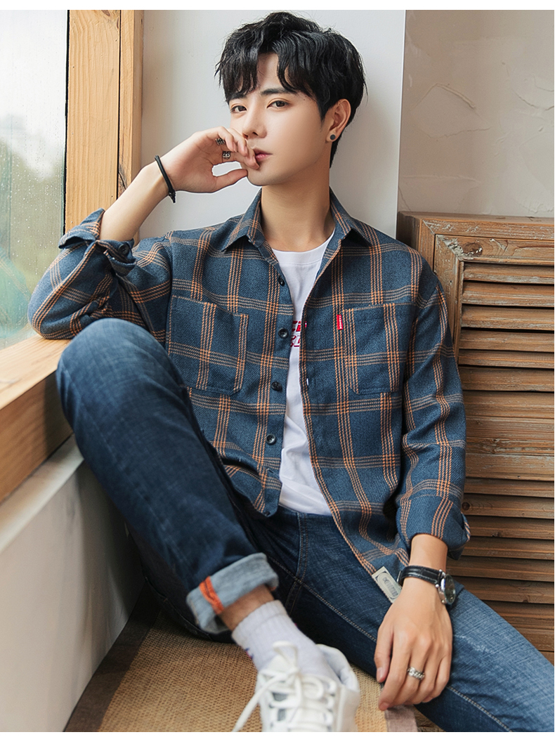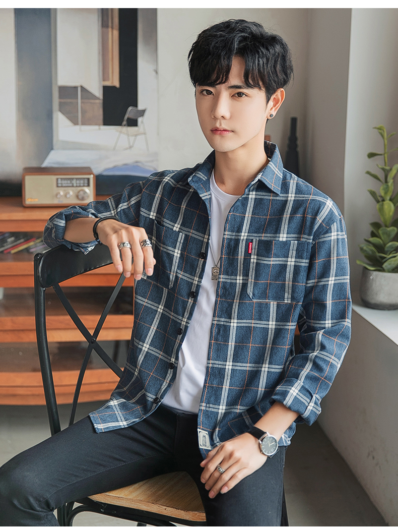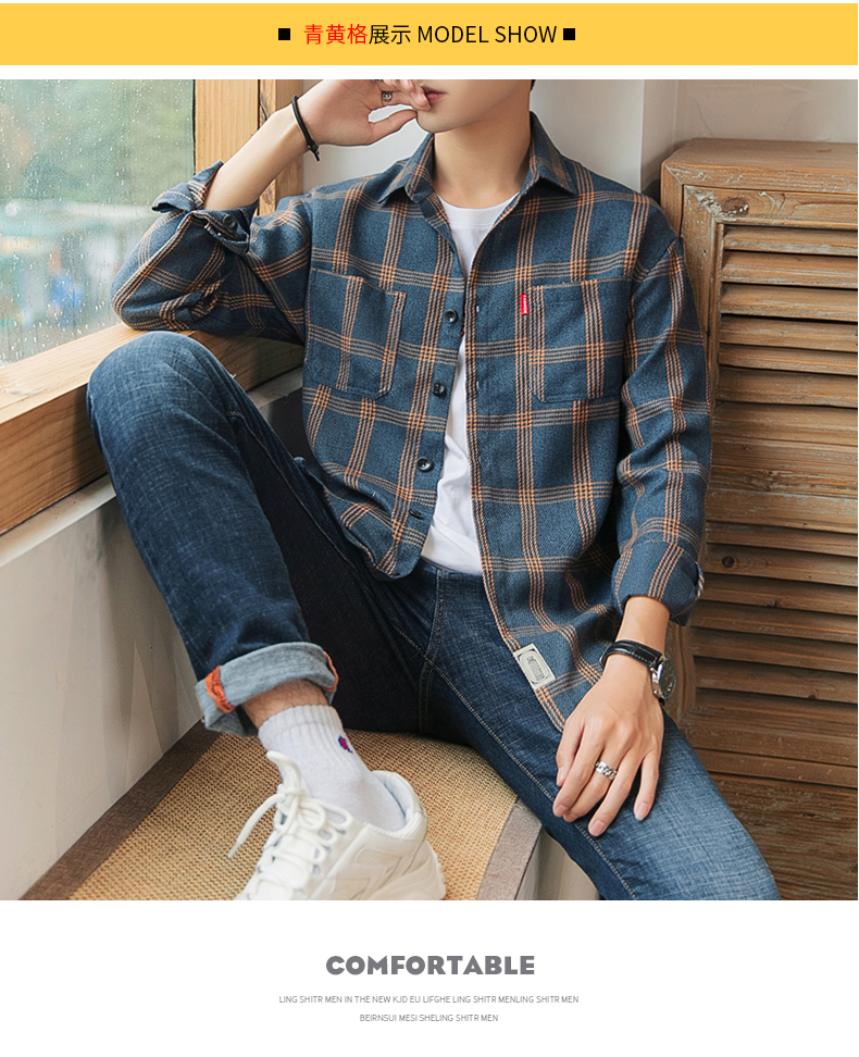 격자 무늬 셔츠 긴팔 남성 자켓 한국 유행 캐주얼 홍콩 스타일 일본식 셔츠 봄 옷 남자의 봄과 가을 스타일